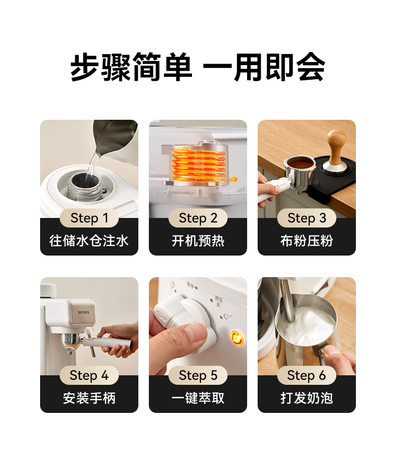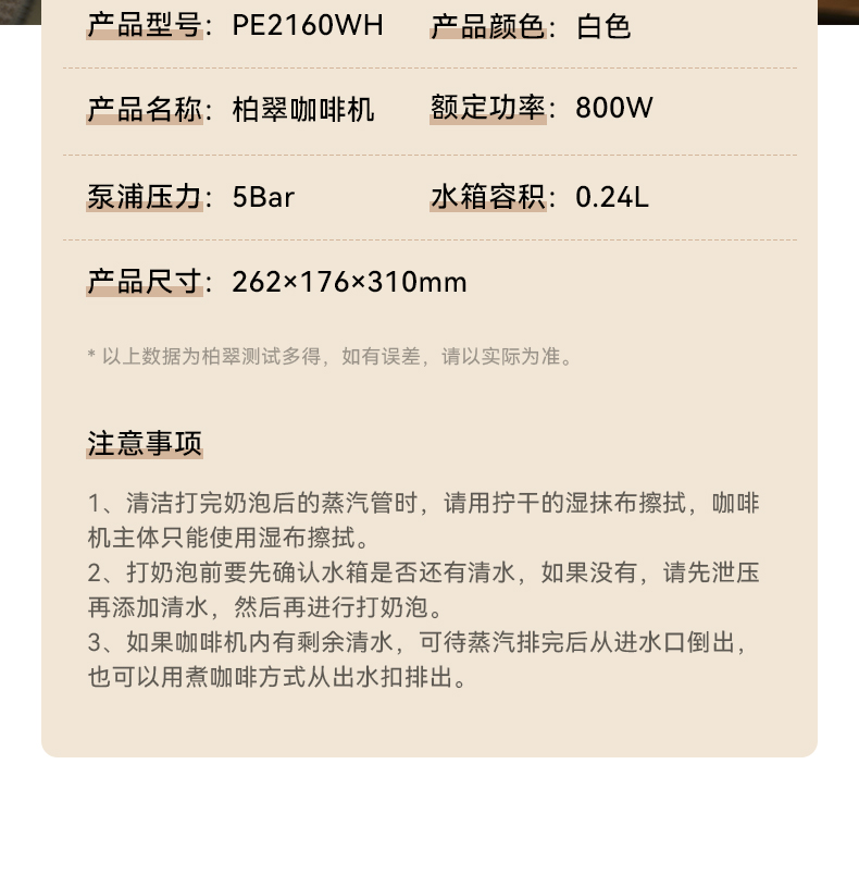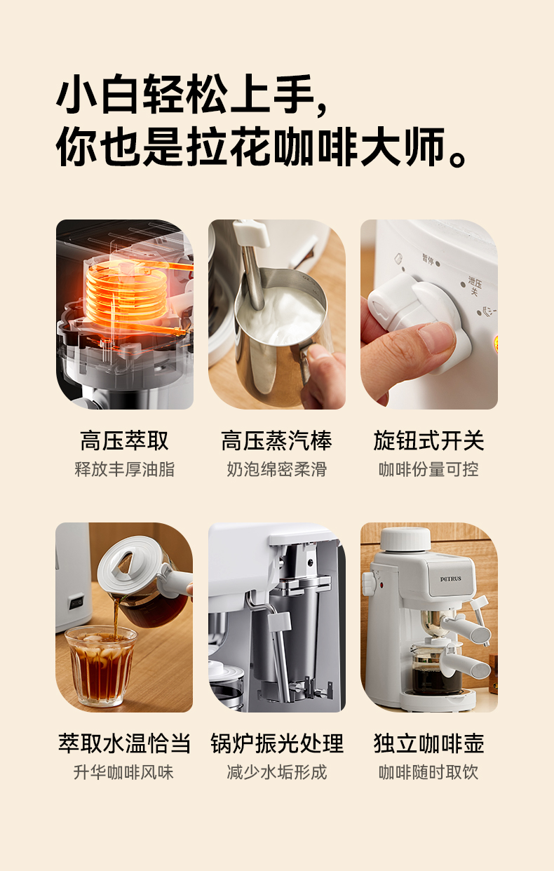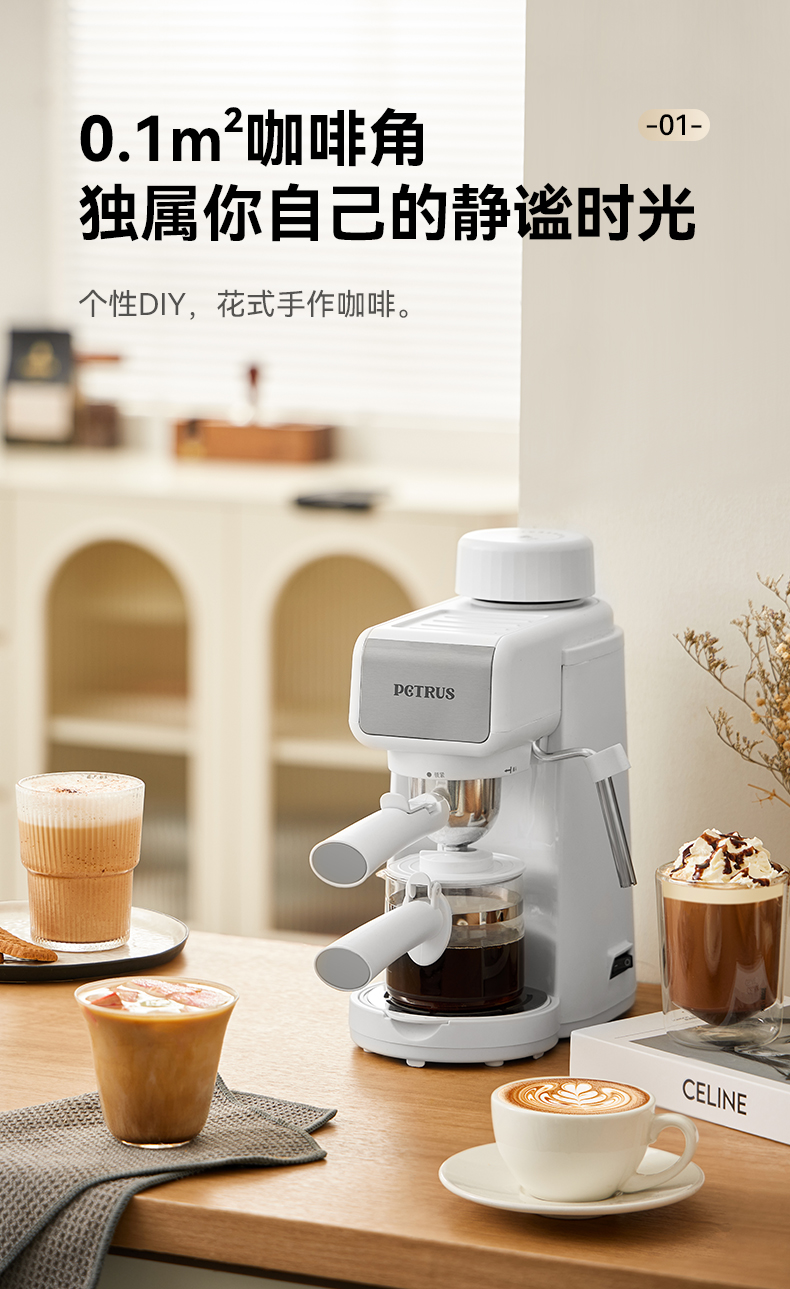 商品名称:petrus/柏翠咖啡机-白色PE2160WH