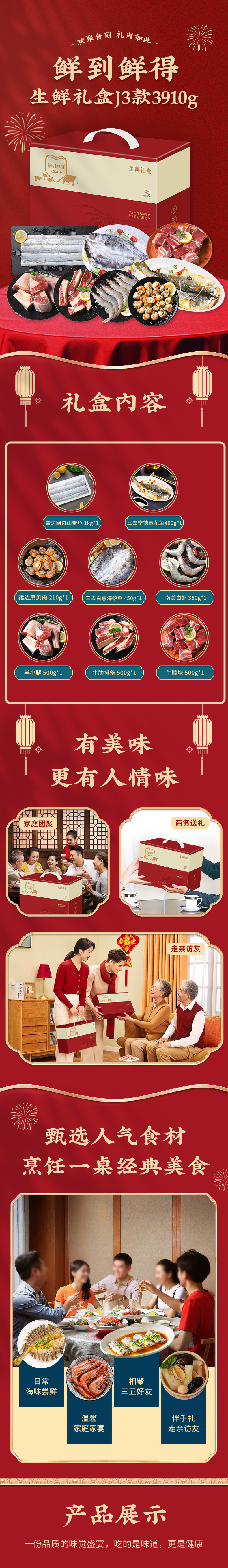 商品名称:【京东/顺丰配送】鲜到鲜得生鲜礼盒J3款3910g