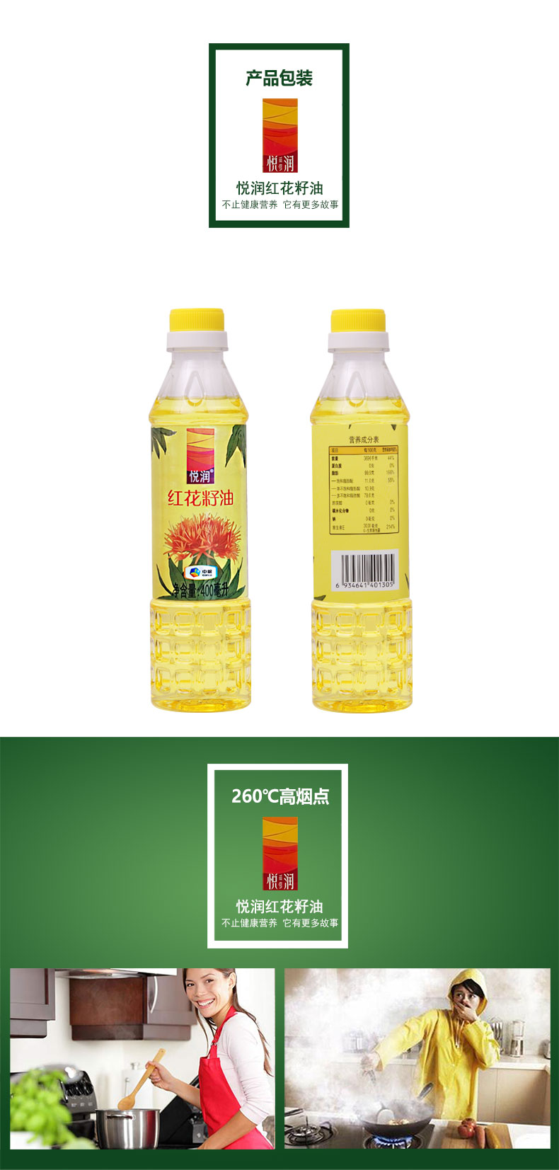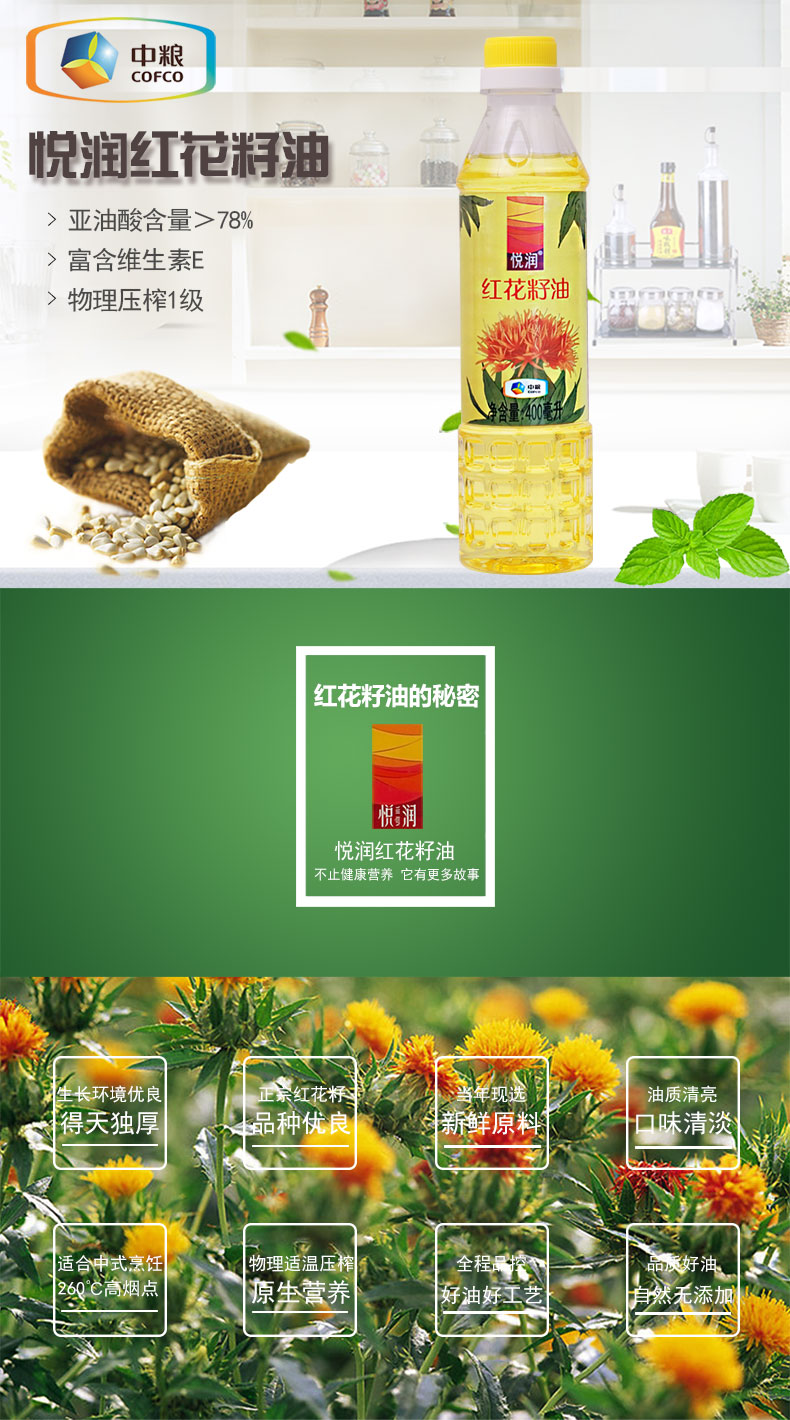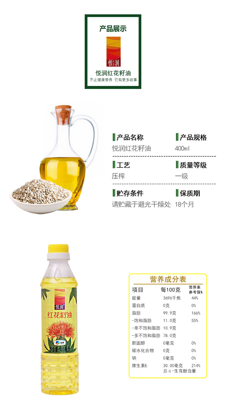 商品名称:中粮悦润红花籽油400ml*2瓶
