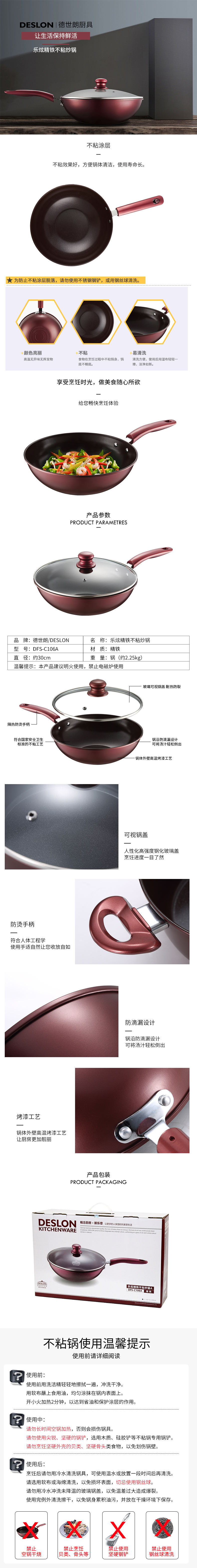 商品名称:DESLON/德世朗30cm乐炫精铁不粘炒锅DFS-C106A