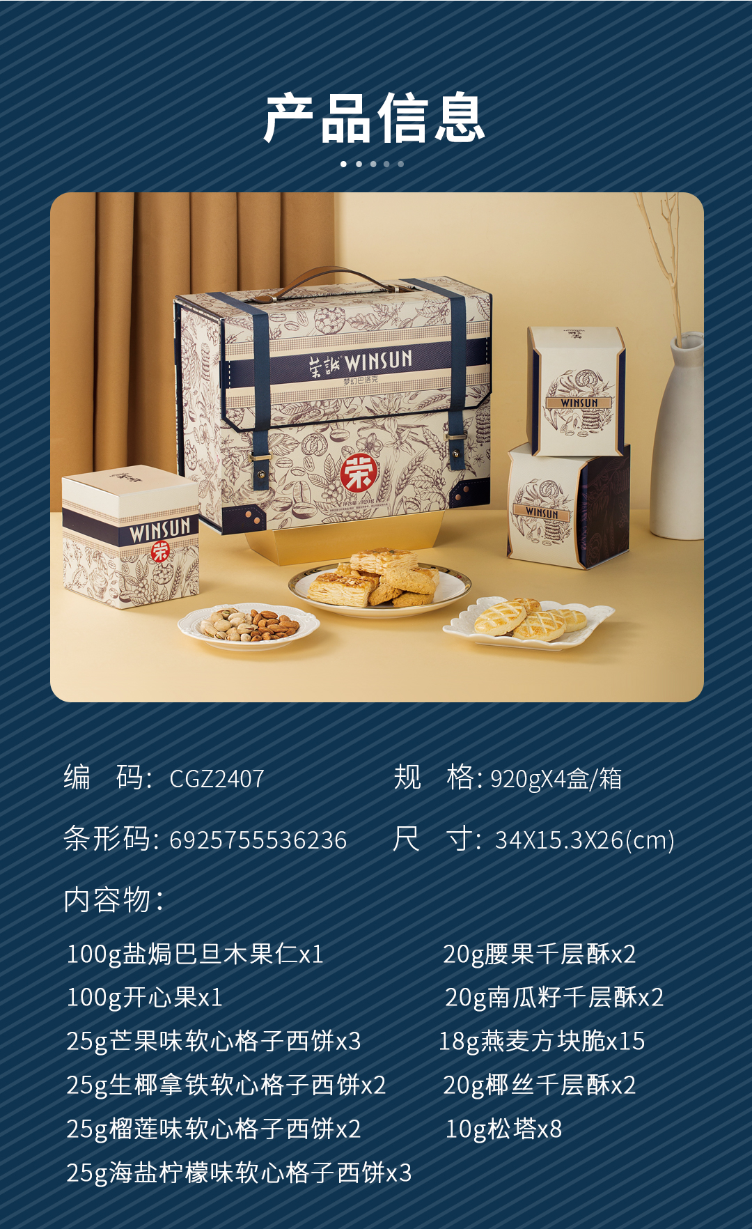 商品名称:WINSUN/荣诚梦幻巴洛克坚果饼点礼盒920g