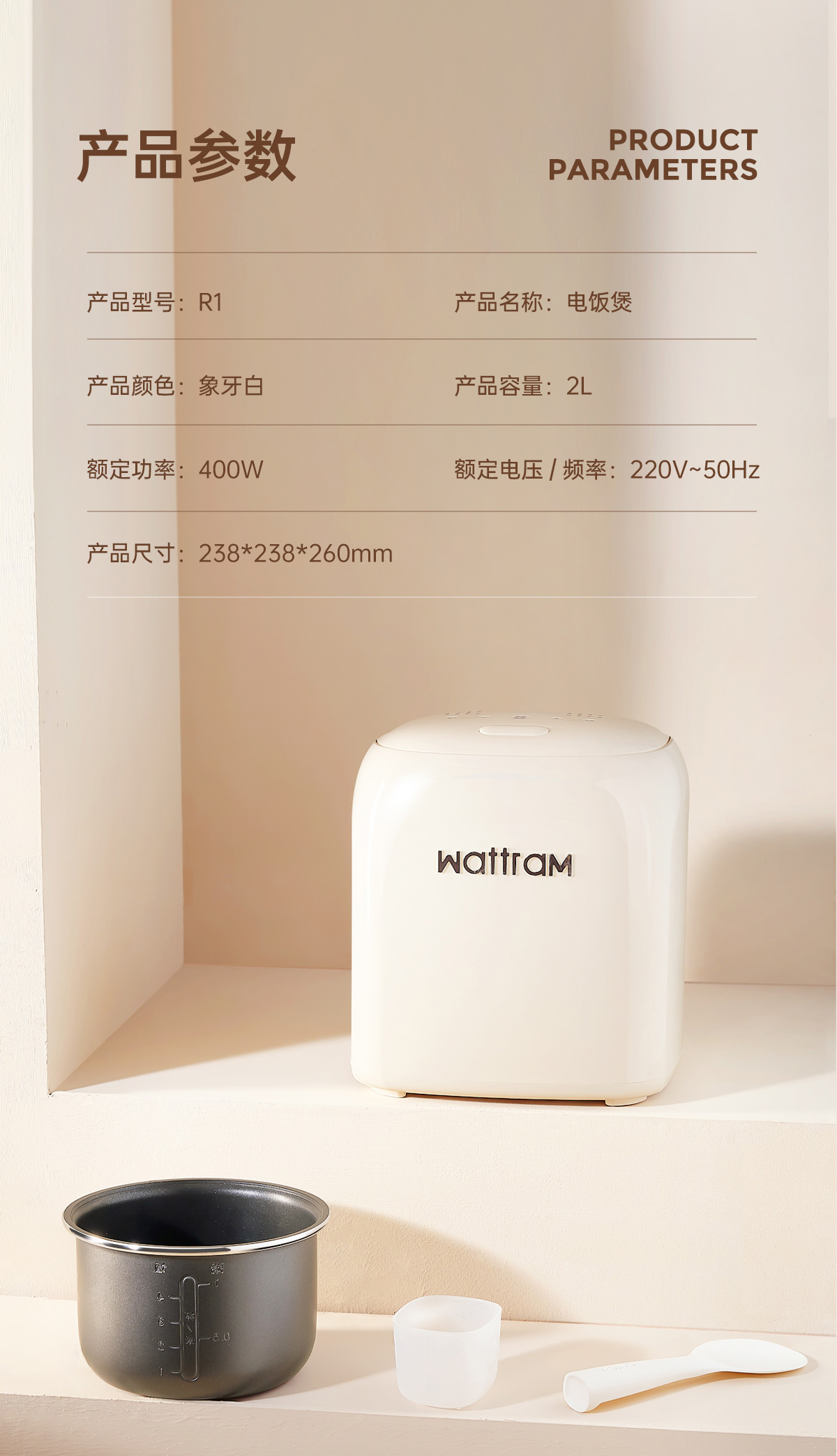 wattram/北欧沃朗2L电饭煲-象牙白R1