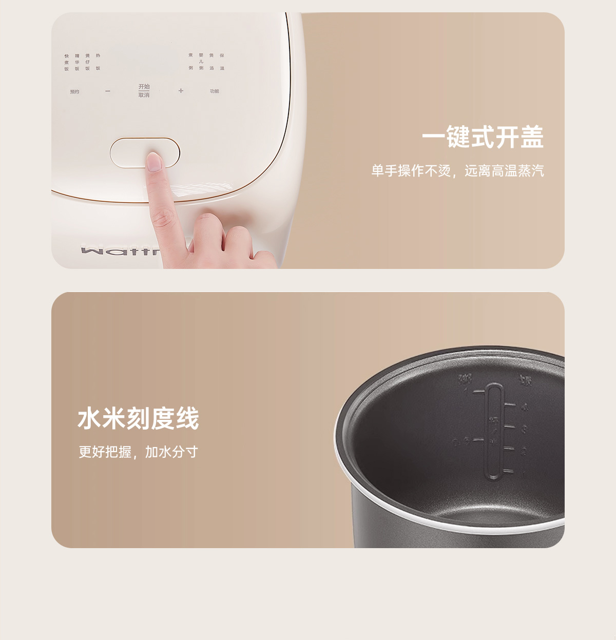 商品名称:wattram/北欧沃朗2L电饭煲-象牙白R1