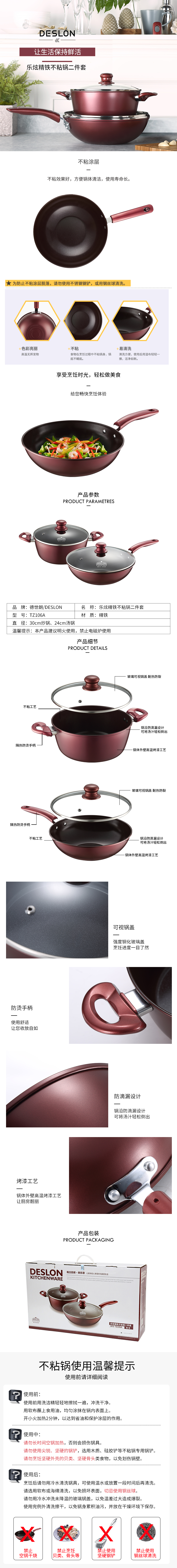 商品名称:DESLON/德世朗乐炫精铁不粘锅二件套TZ106A