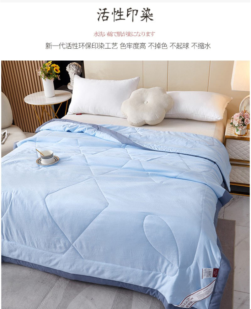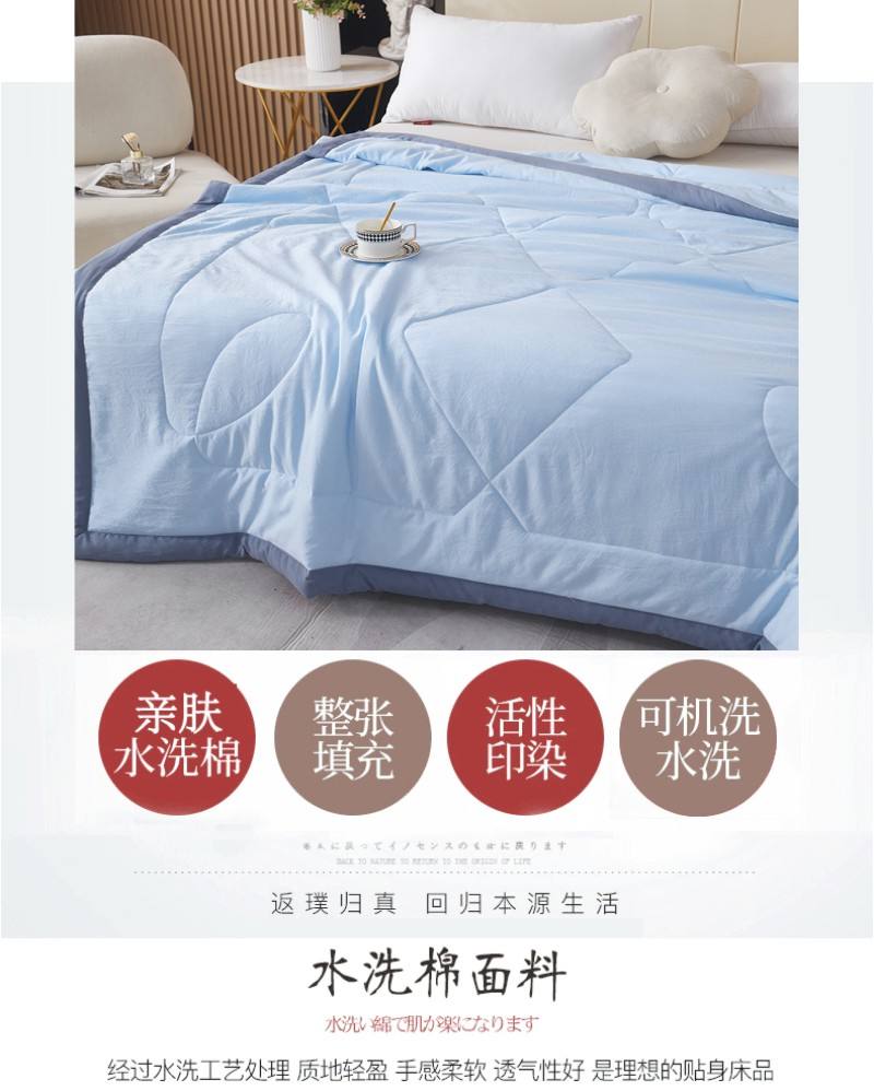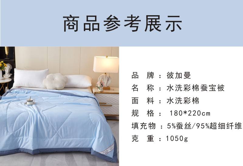 商品名称:BeGaMan/彼加曼水洗彩棉纤维蚕丝被-蓝色180*220cm 1050g