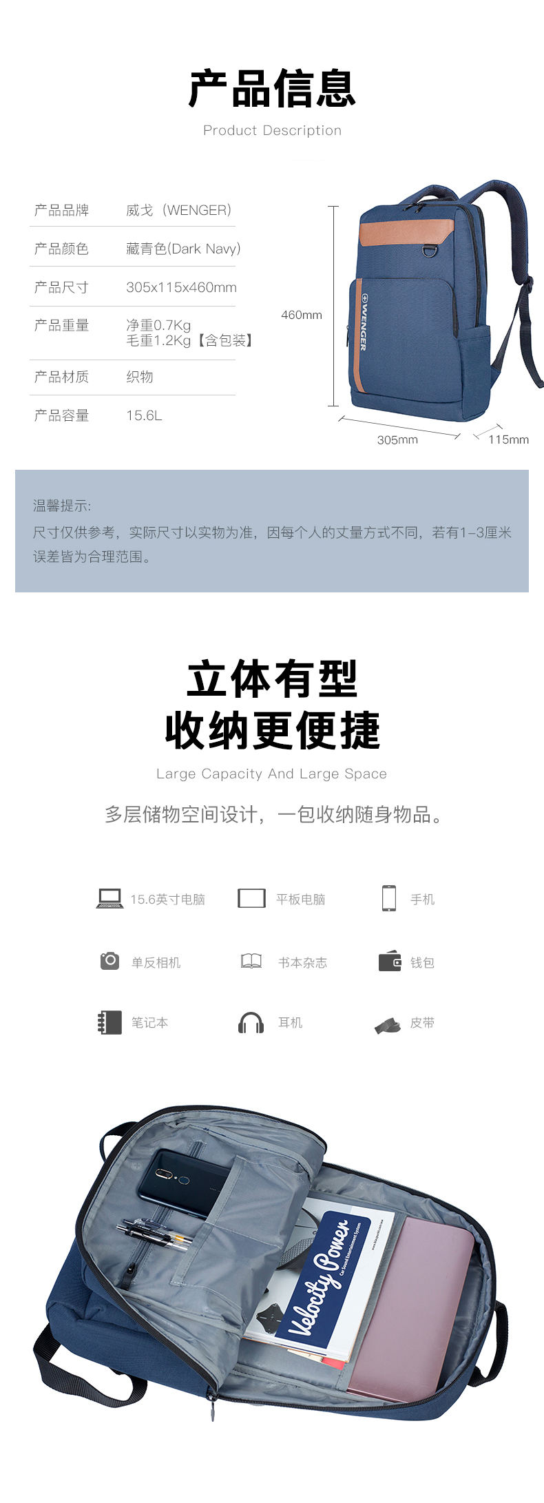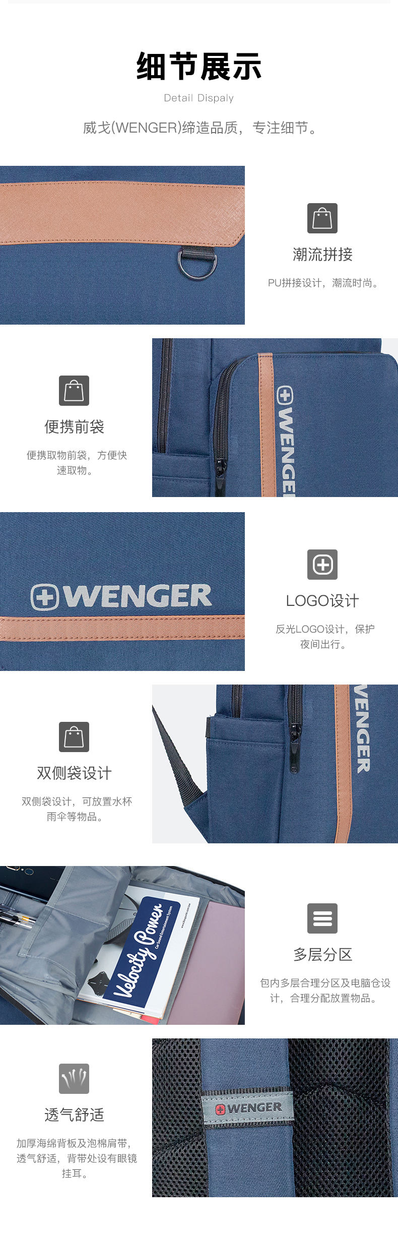 商品名称:Wenger/威戈城市行者系列潮流运动双肩包-藏青色