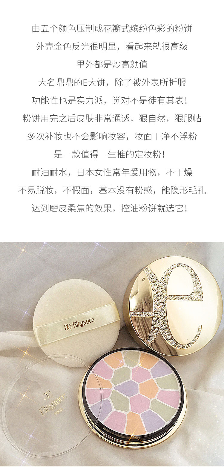 商品名称:Elégance/雅莉格丝 欢颜蜜粉定妆饼 E大饼 便携装8.8g/家庭装27g