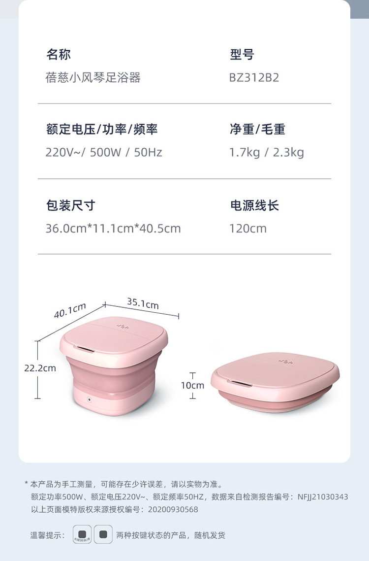 商品名称:beici/蓓慈小风琴折叠足浴器BZ312B2