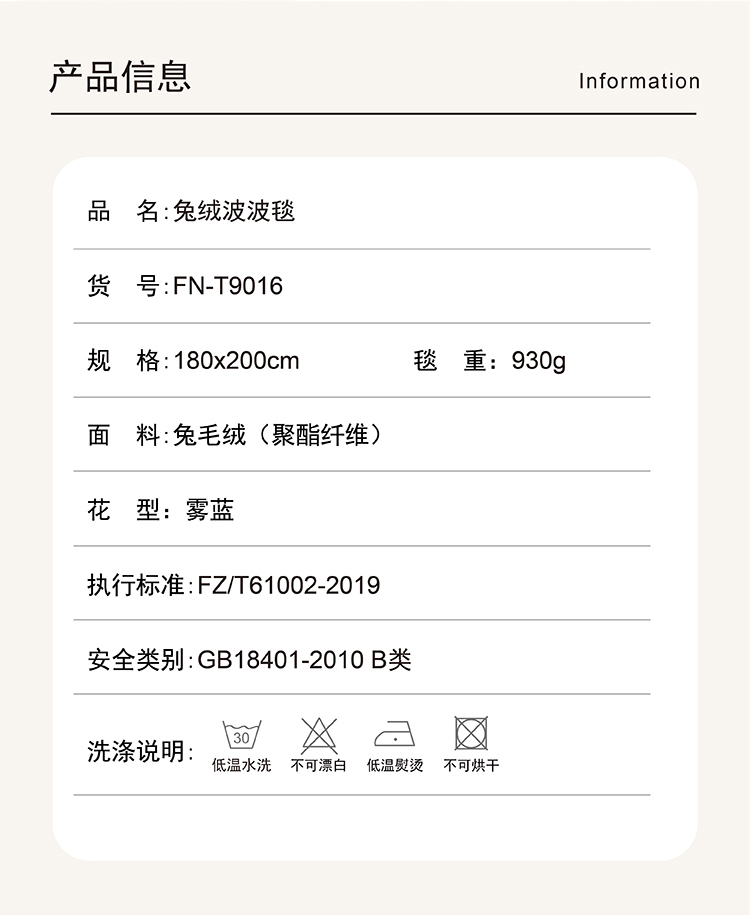 商品名称:faunen/芳恩雾蓝兔绒波波毯180*200cm 930g