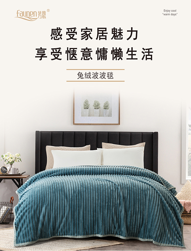 faunen/芳恩雾蓝兔绒波波毯180*200cm 930g