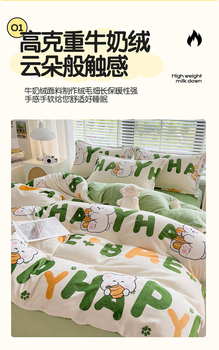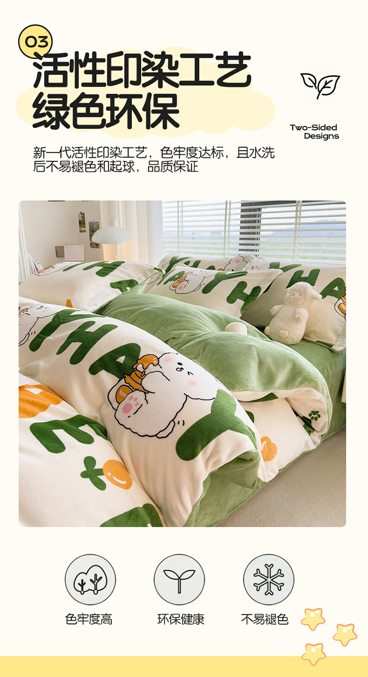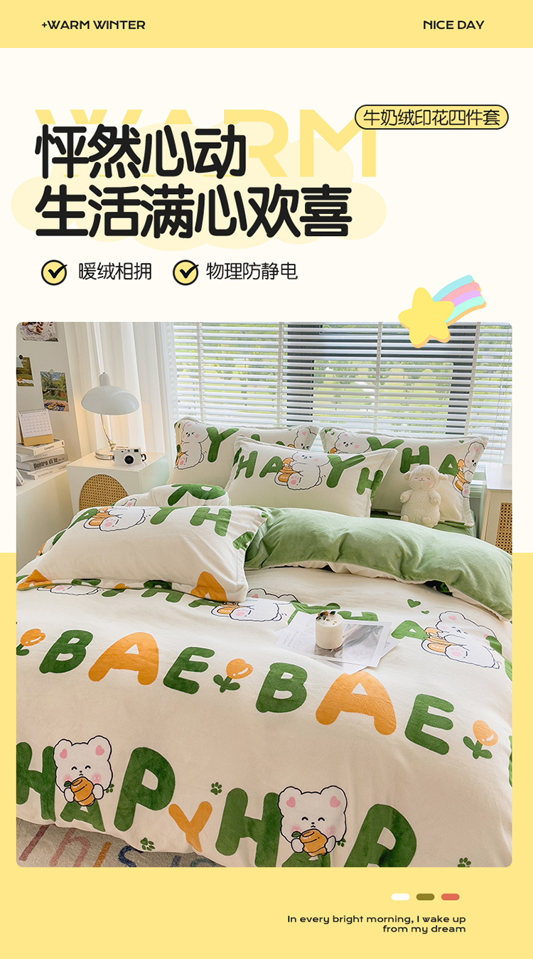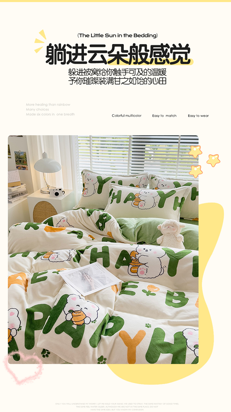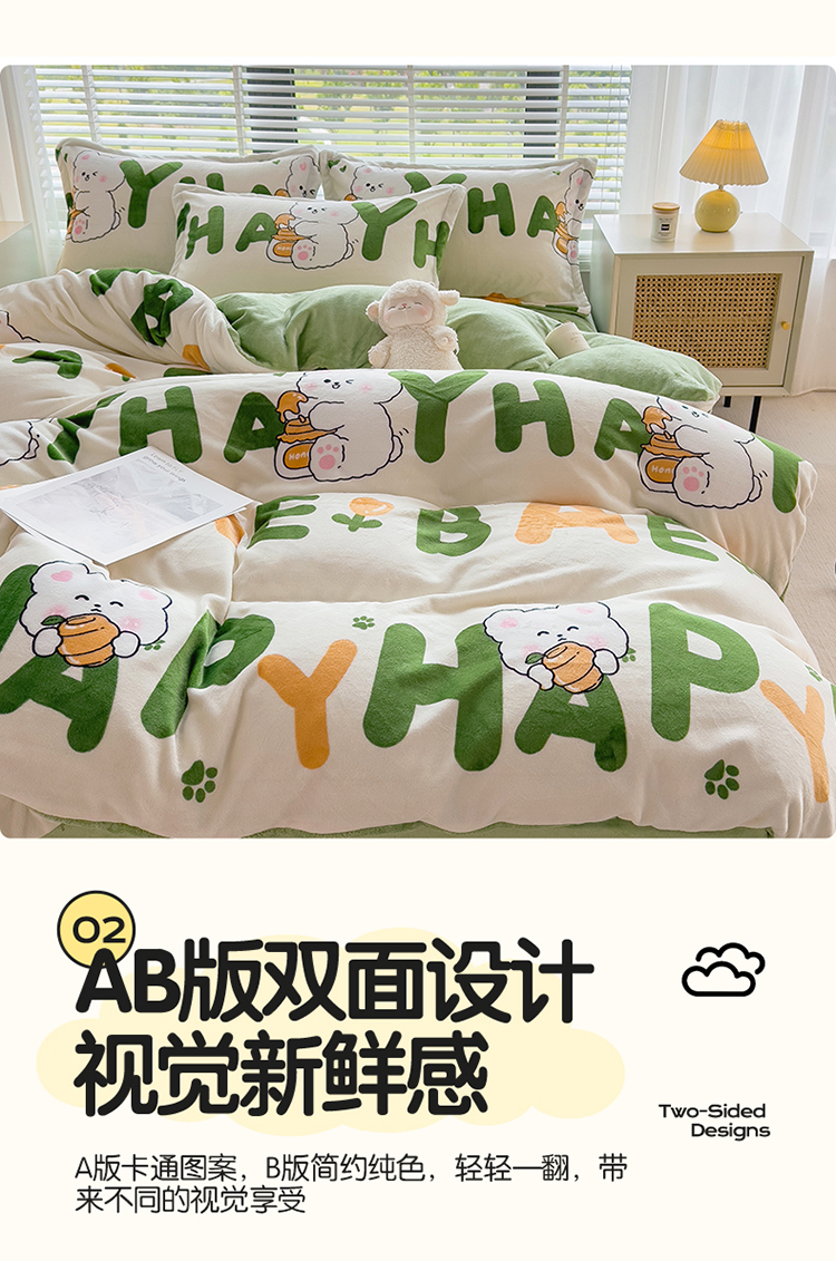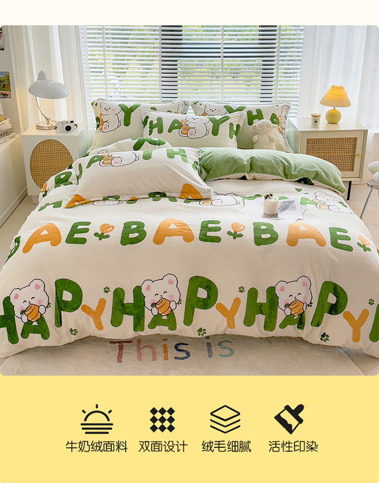 PLOVER/啄木鸟字母兔子牛奶绒印花床品四件套200*230cm
