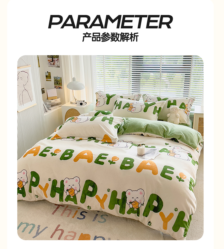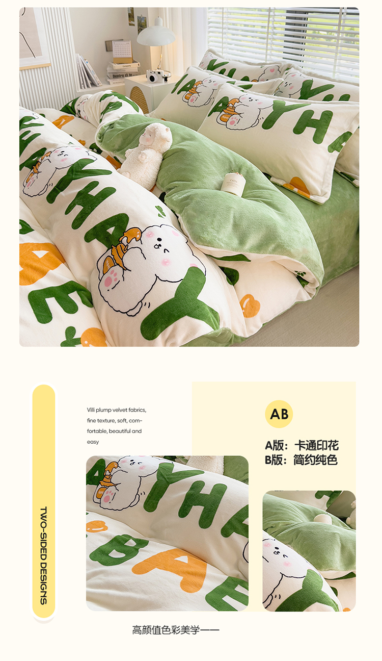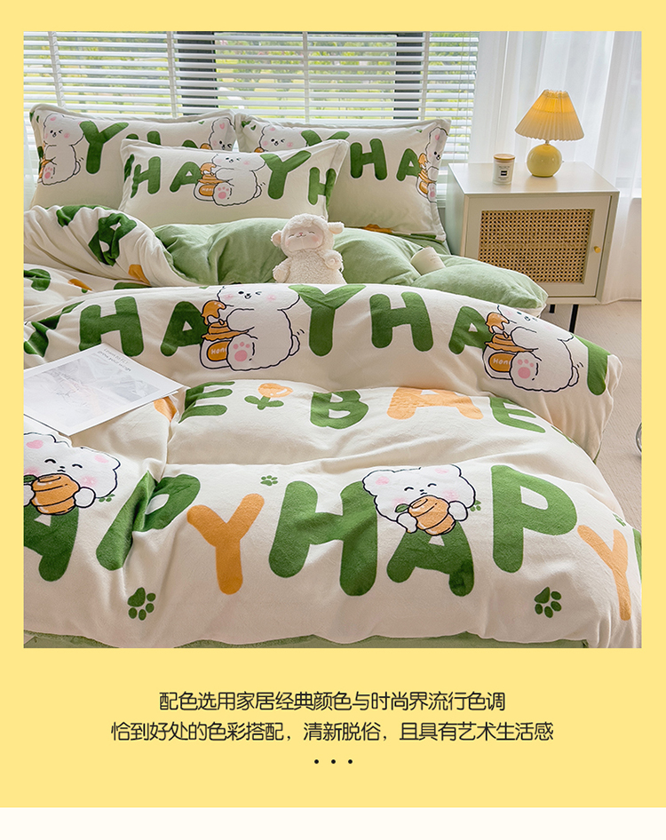 商品名称:PLOVER/啄木鸟字母兔子牛奶绒印花床品四件套200*230cm