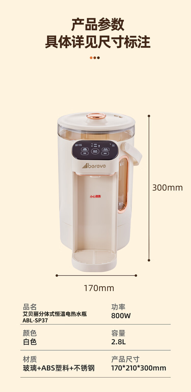 商品名称:ABEREVE/艾贝丽2.8升分体式恒温电热水瓶ABL-SP37