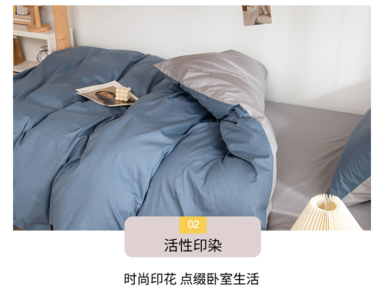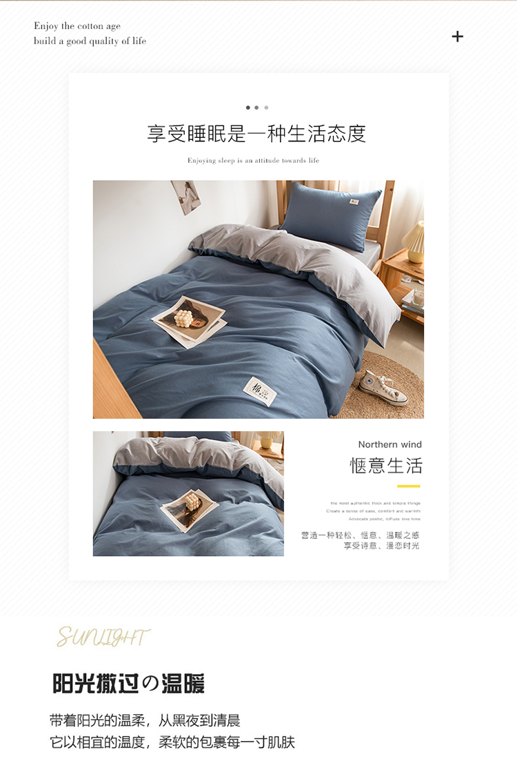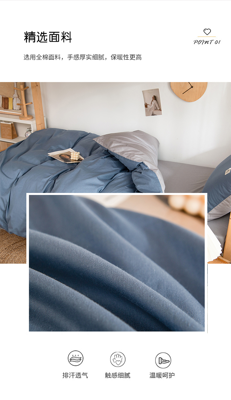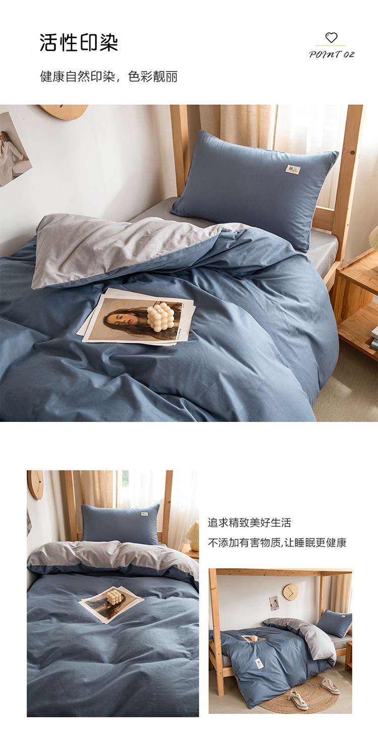 PLOVER/啄木鸟色拼系列学生全棉床品三件套-海蓝155*200cm±5cm