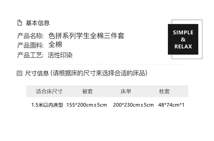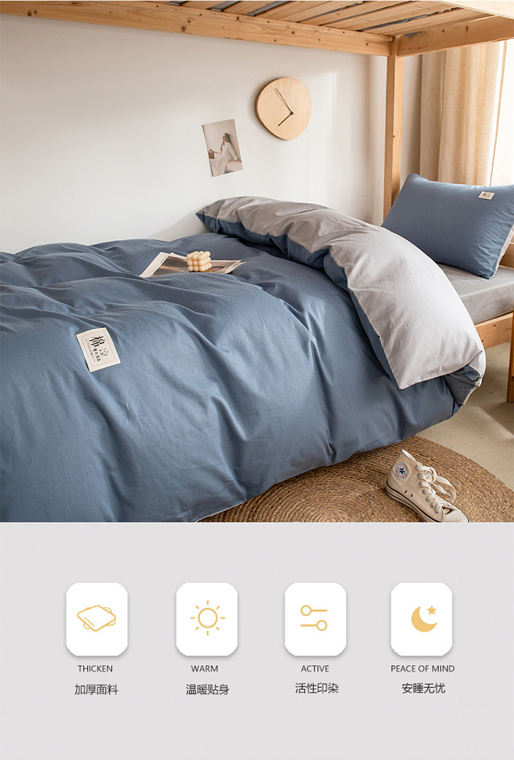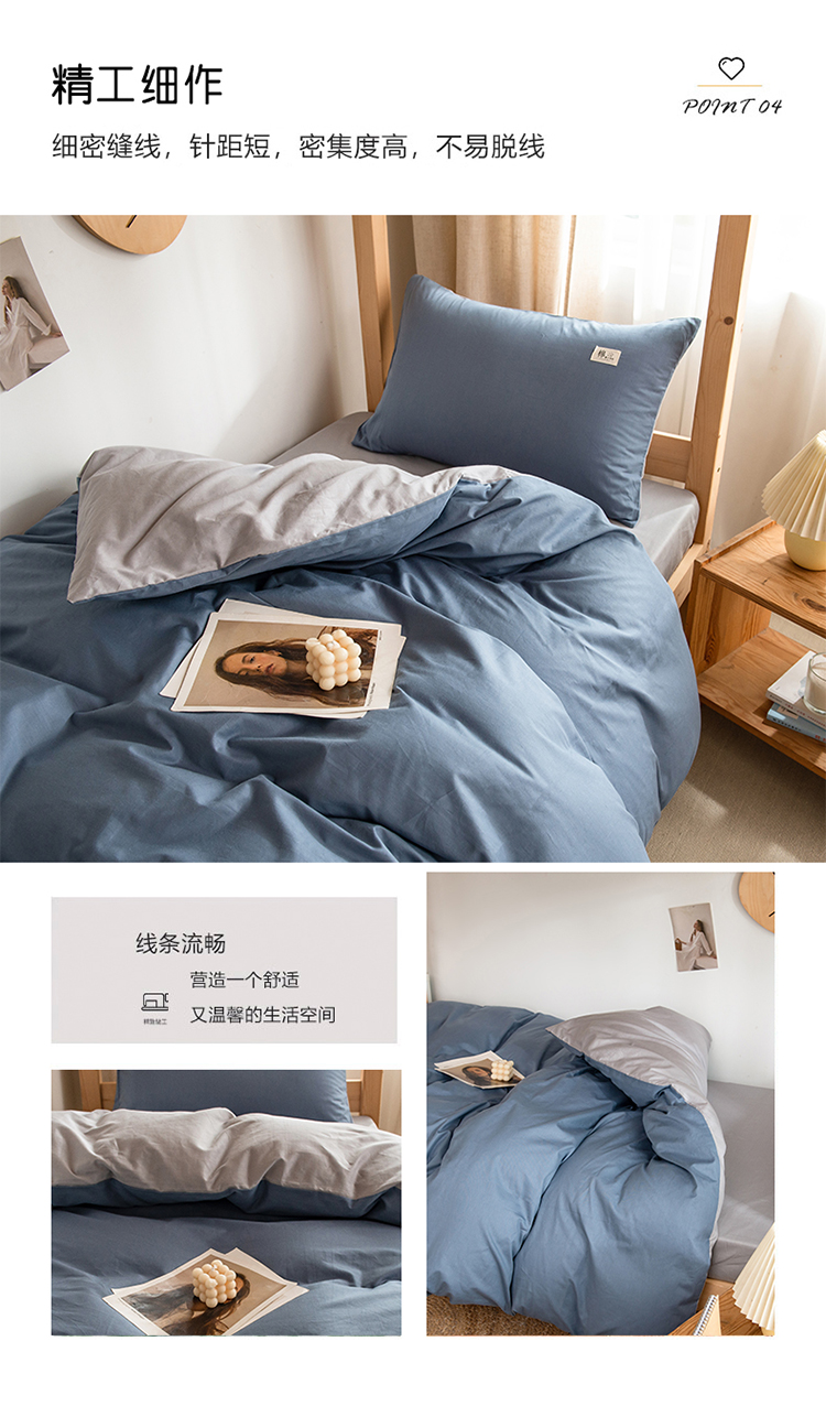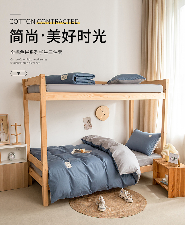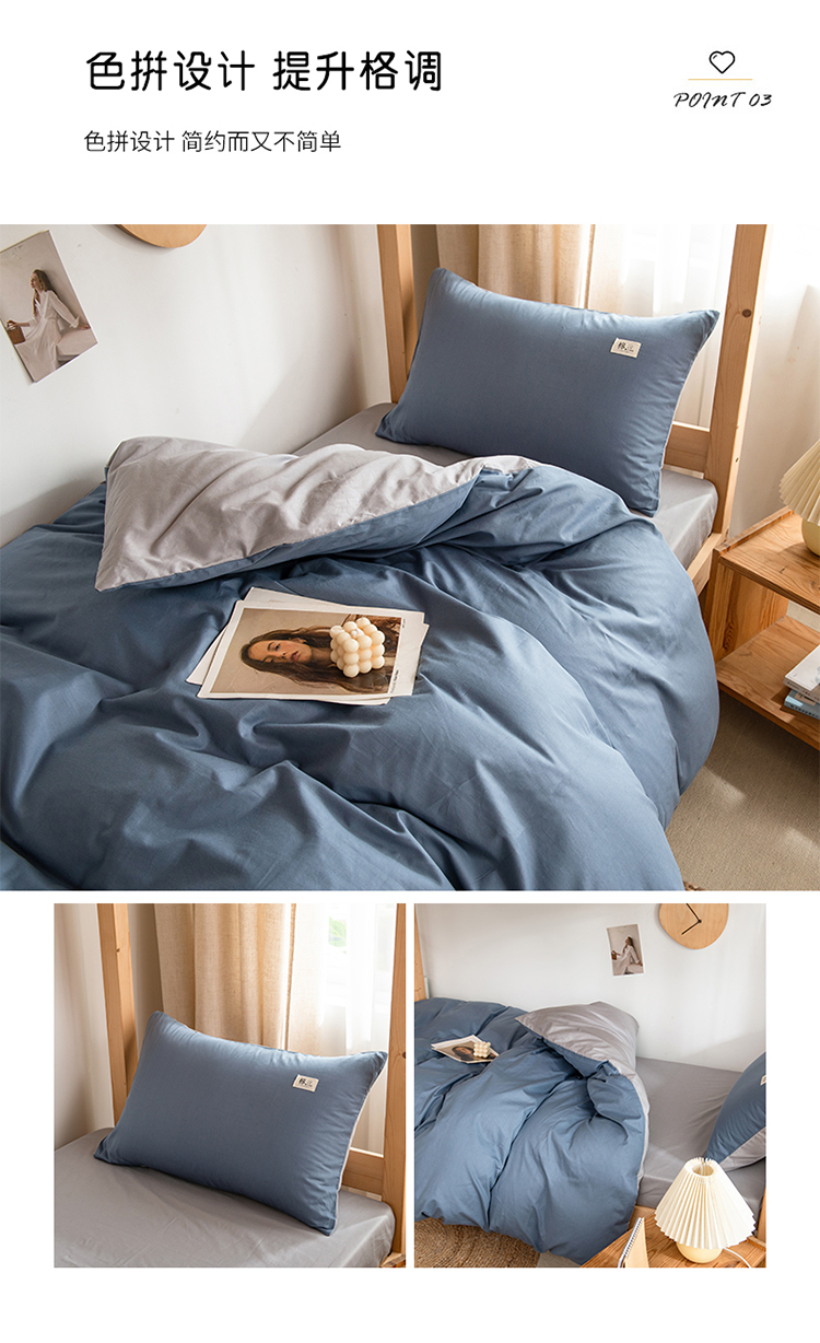 商品名称:PLOVER/啄木鸟色拼系列学生全棉床品三件套-海蓝155*200cm±5cm