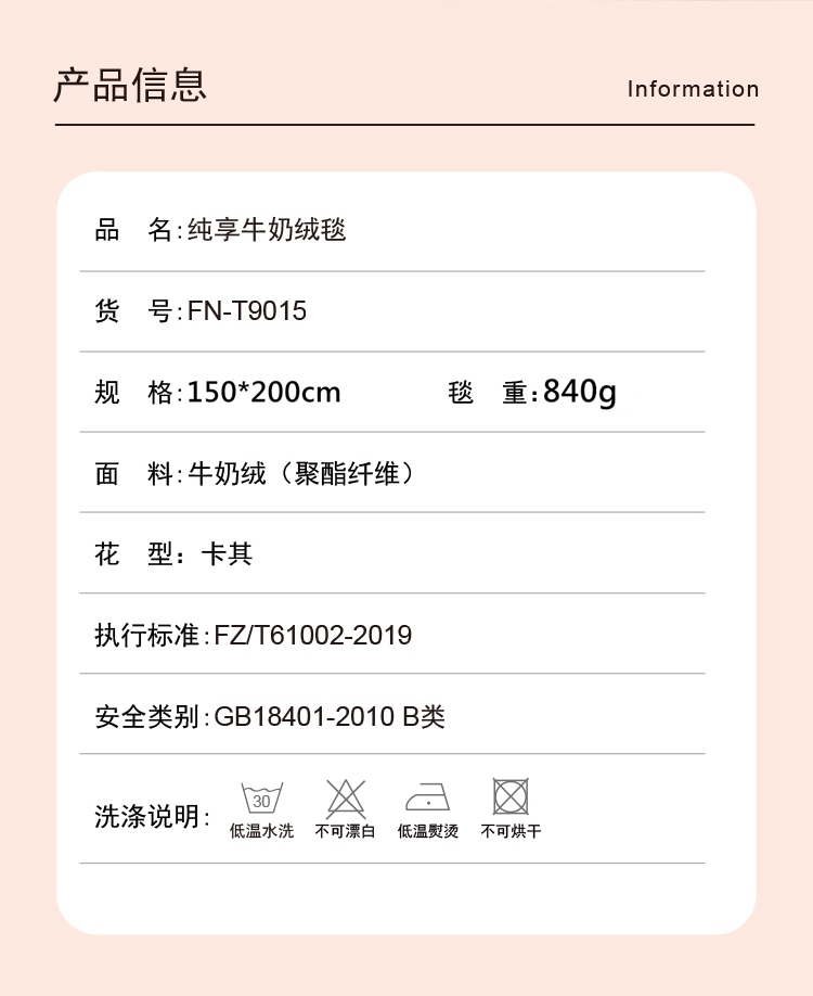 商品名称:faunen/芳恩卡其纯享牛奶绒毯150*200cm 840g