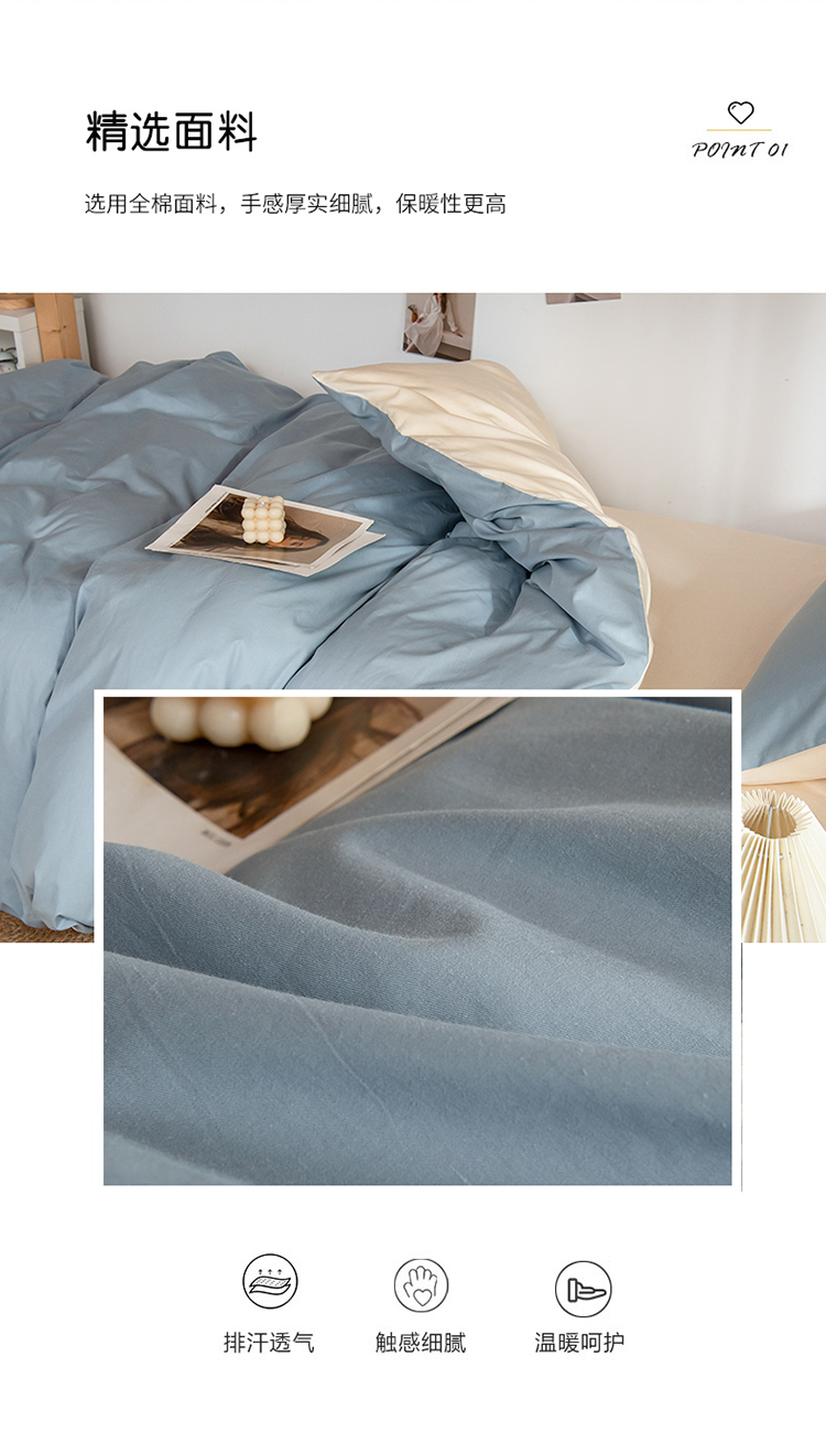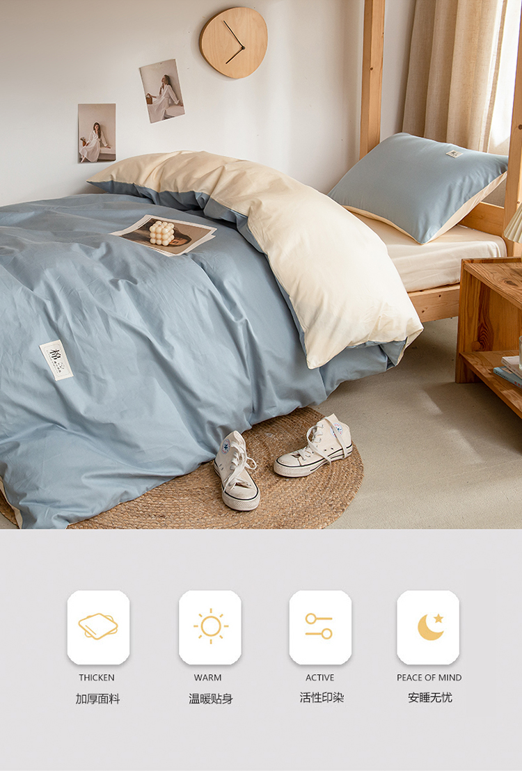 PLOVER/啄木鸟色拼系列学生全棉床品三件套-奶茶155*200cm±5cm