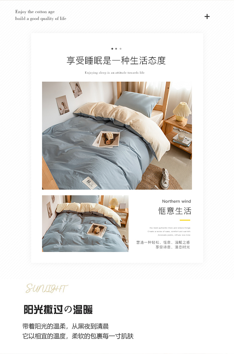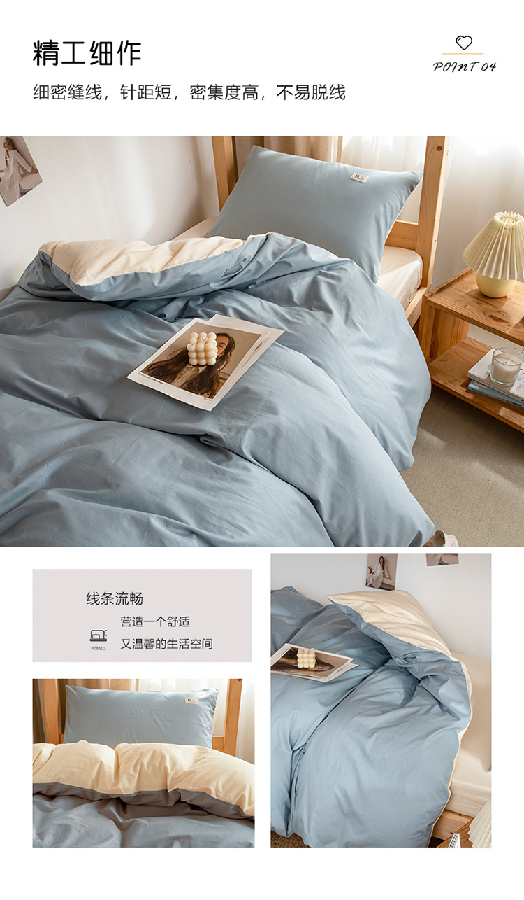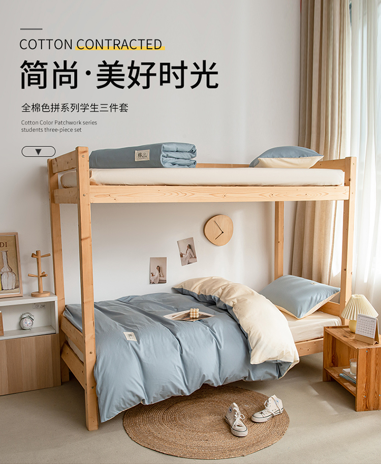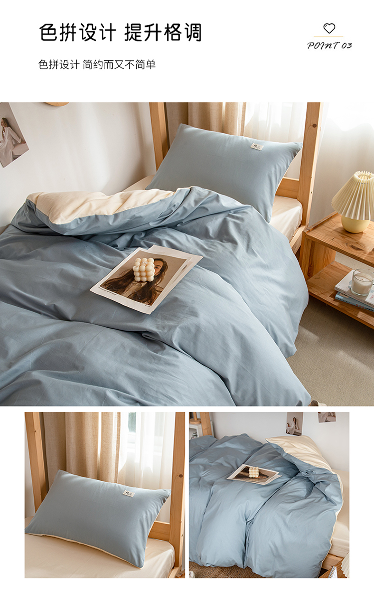 商品名称:PLOVER/啄木鸟色拼系列学生全棉床品三件套-奶茶155*200cm±5cm
