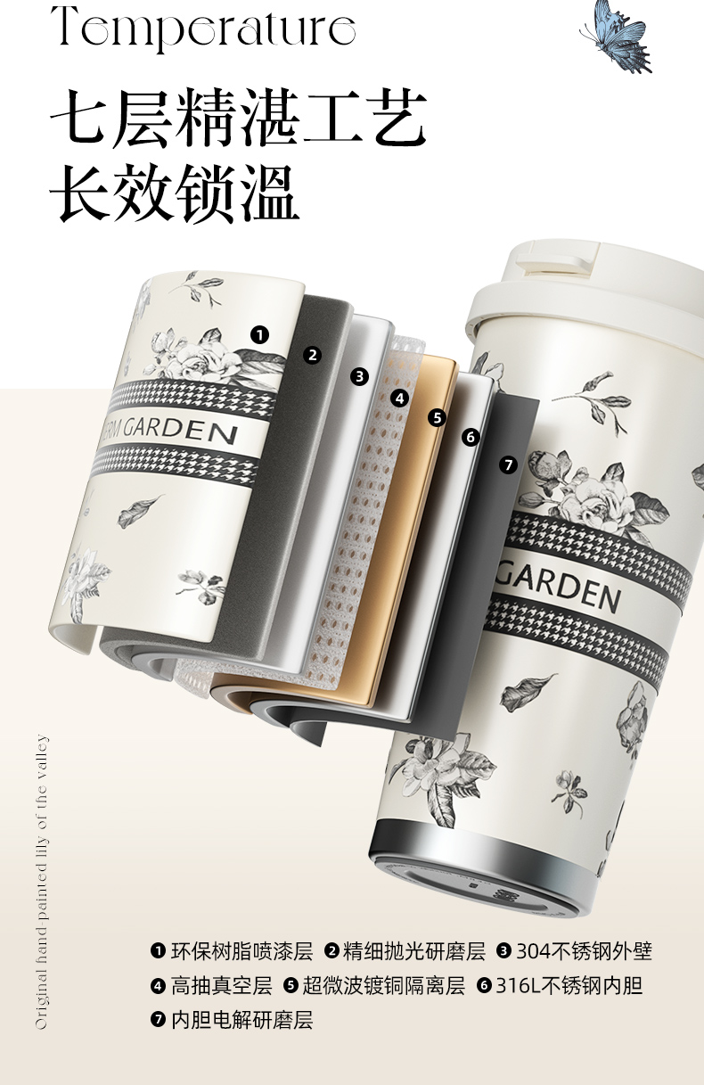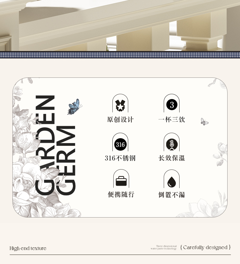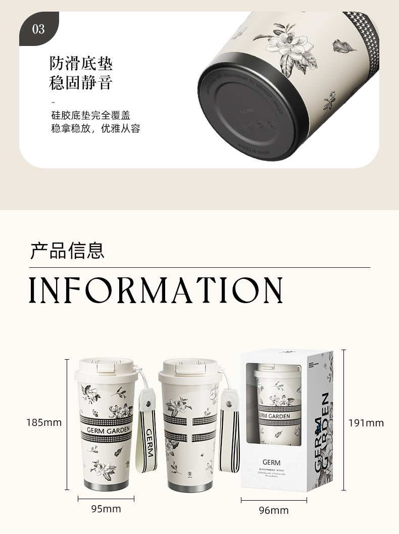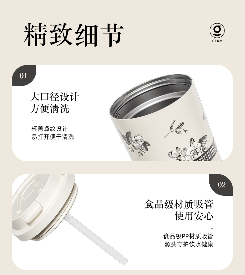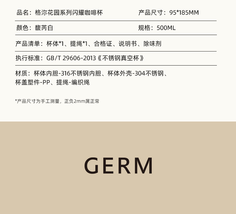 商品名称:GERM/格沵500毫升栀子花随行保温咖啡杯-馥芮白