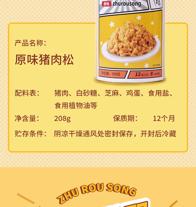 商品名称:Fukilo/富崎乐原味猪肉松208g*2罐