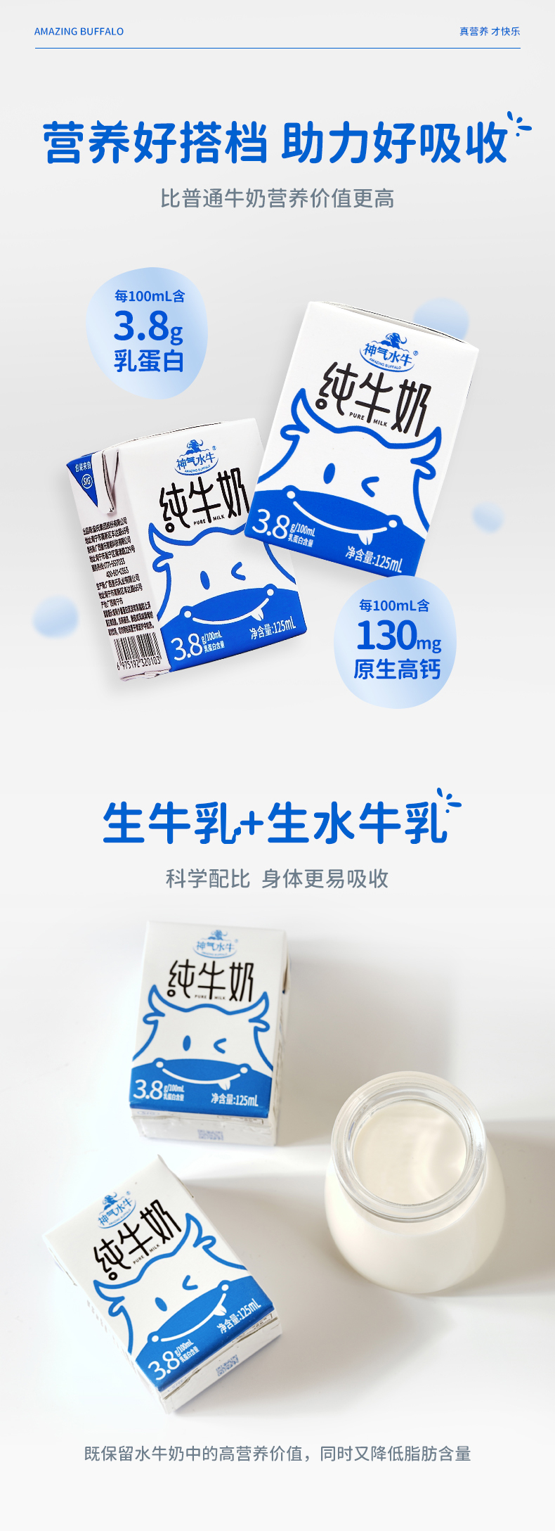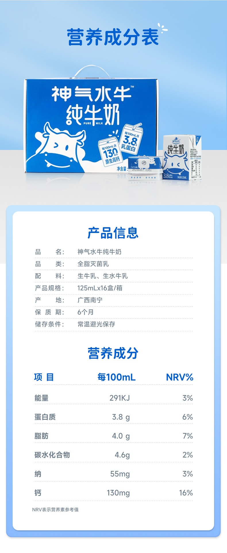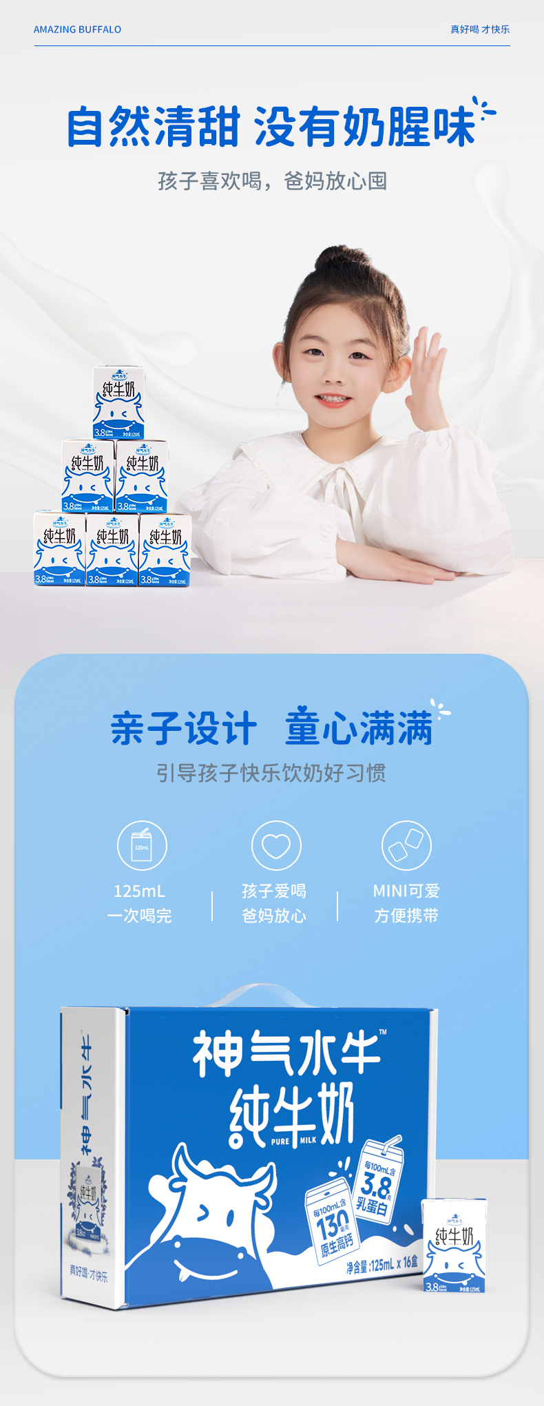 商品名称:神气水牛纯牛奶整箱125ml*16盒