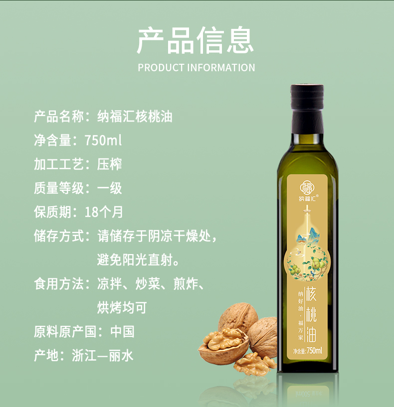 商品名称:纳福汇核桃油750ml