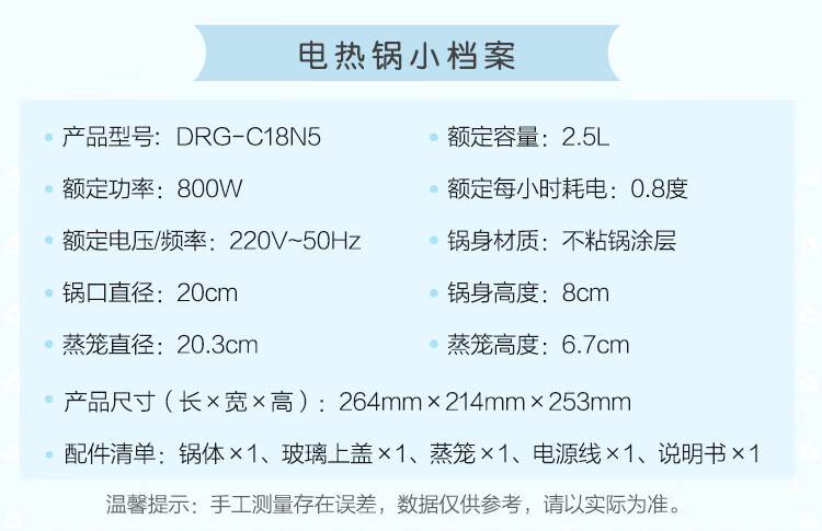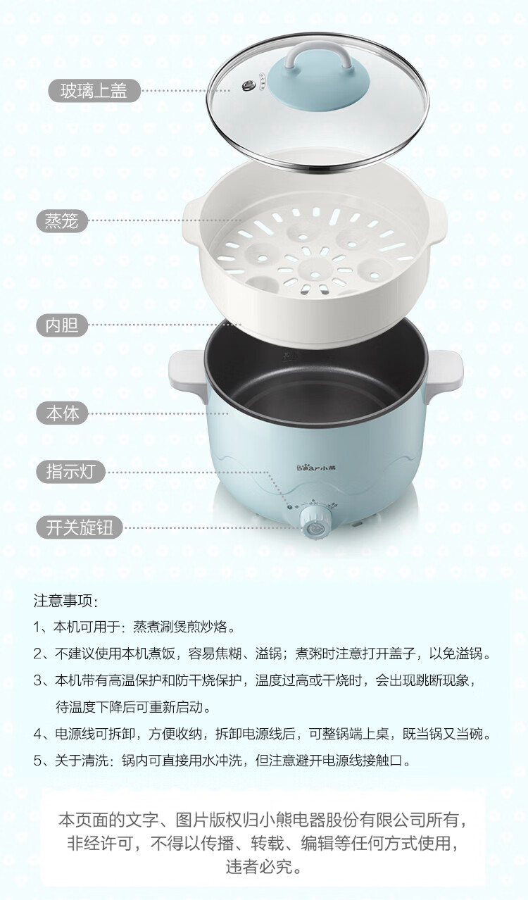 商品名称:Bear/小熊2.5升电热锅DRG-C18N5