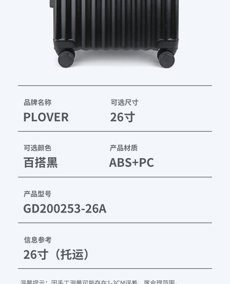 商品名称:PLOVER/啄木鸟26寸万向轮拉杆箱GD200253-26A