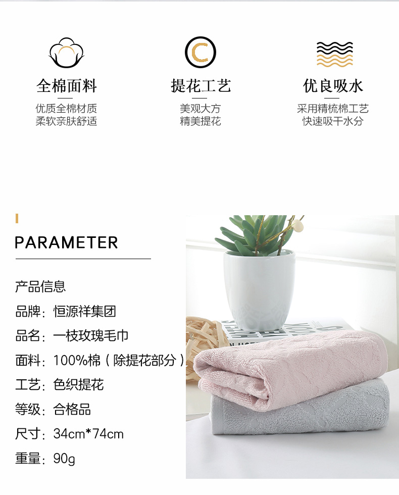 商品名称:恒源祥彩羊一枝玫瑰毛巾2条
