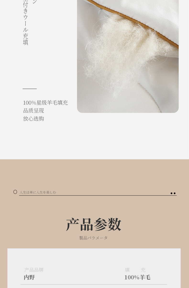 商品名称:UCHINO/内野倾辰羊毛被200*230cm 2000g