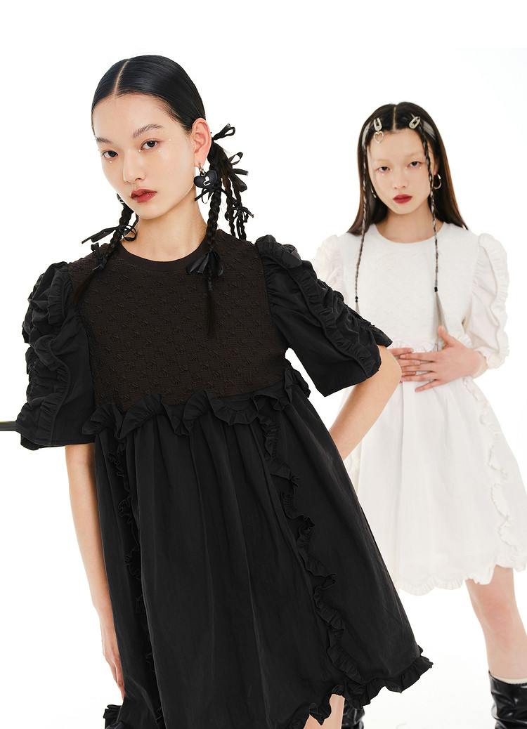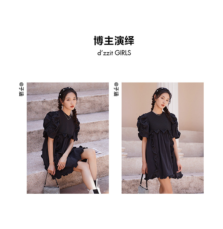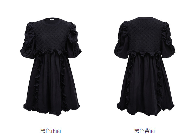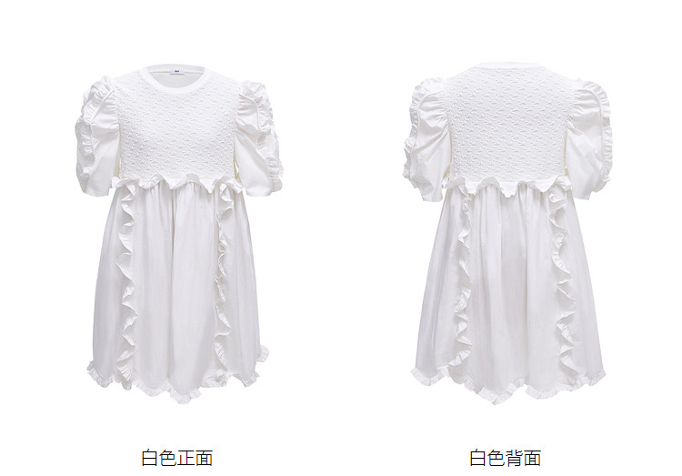 商品名称:地素夏秋季专柜甜美纯色提花拼接荷叶边短袖连衣裙 074699