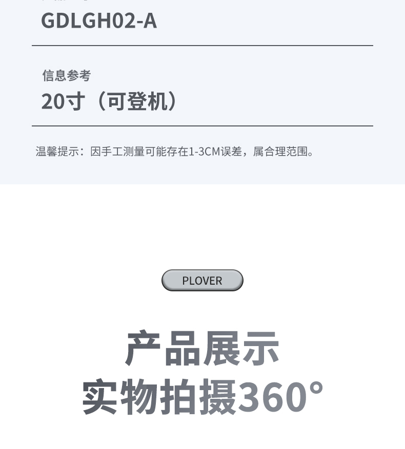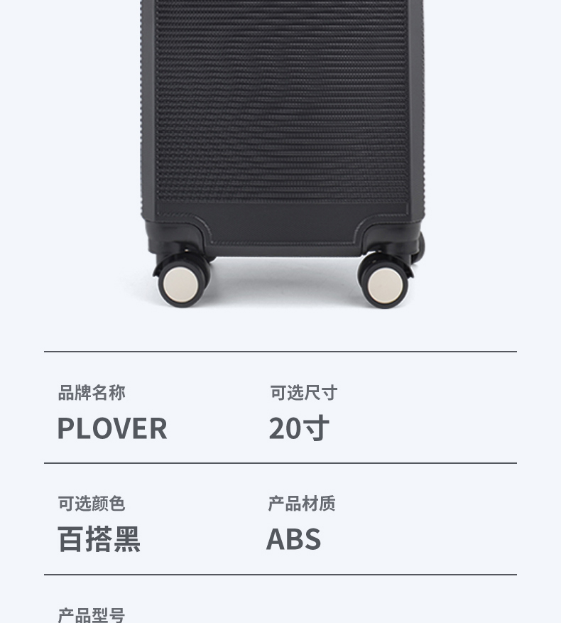 商品名称:PLOVER/啄木鸟拉链款拉杆登机箱