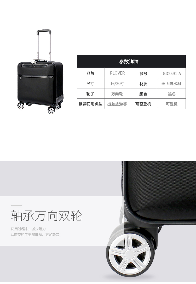 商品名称:PLOVER/啄木鸟万向轮布料拉杆登机箱