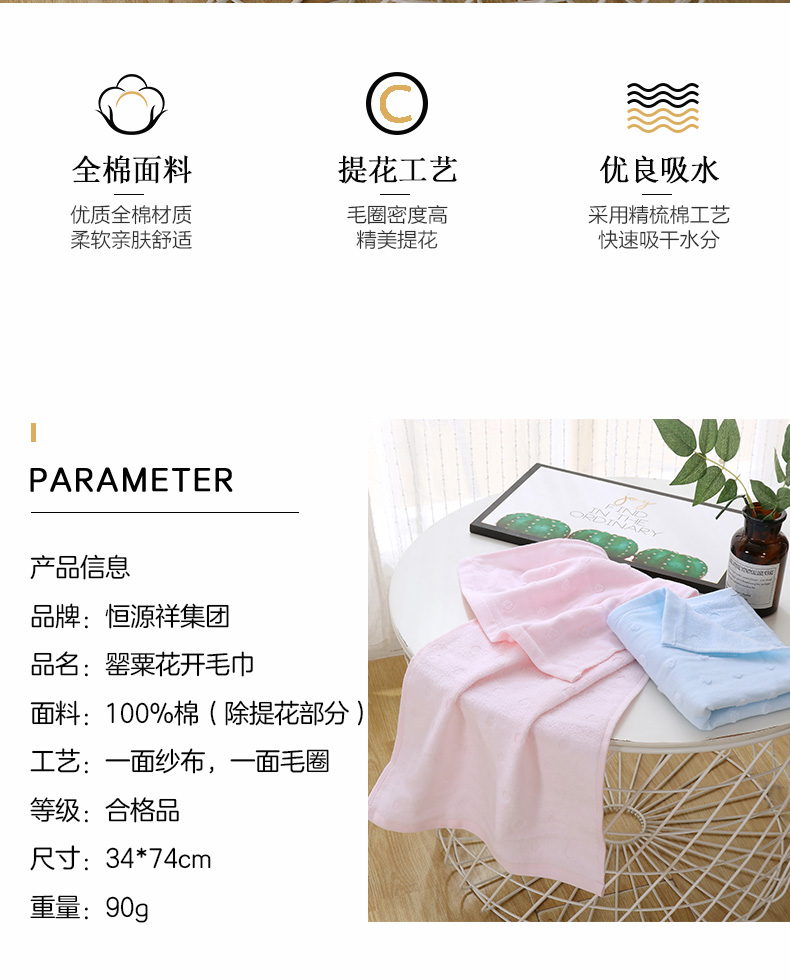 商品名称:恒源祥彩羊罂粟花开毛巾2条