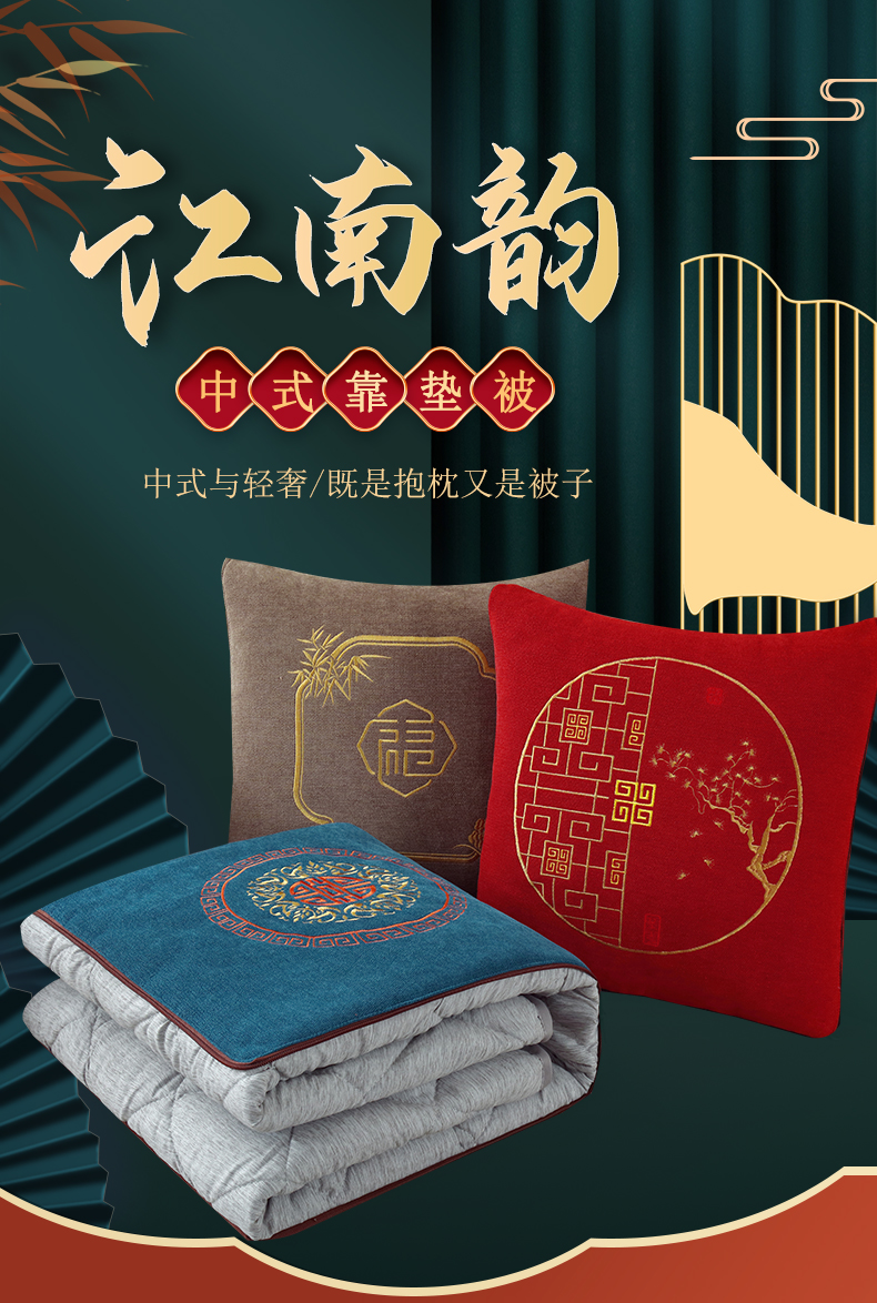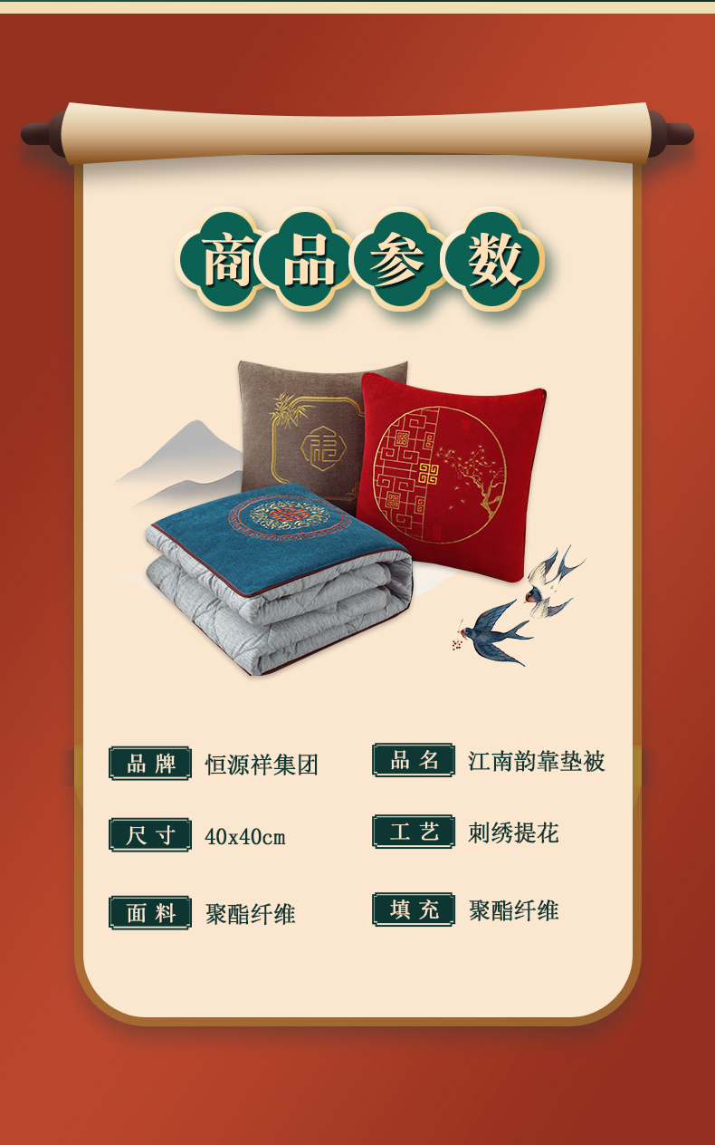 商品名称:恒源祥彩羊江南韵绣花中式靠垫被