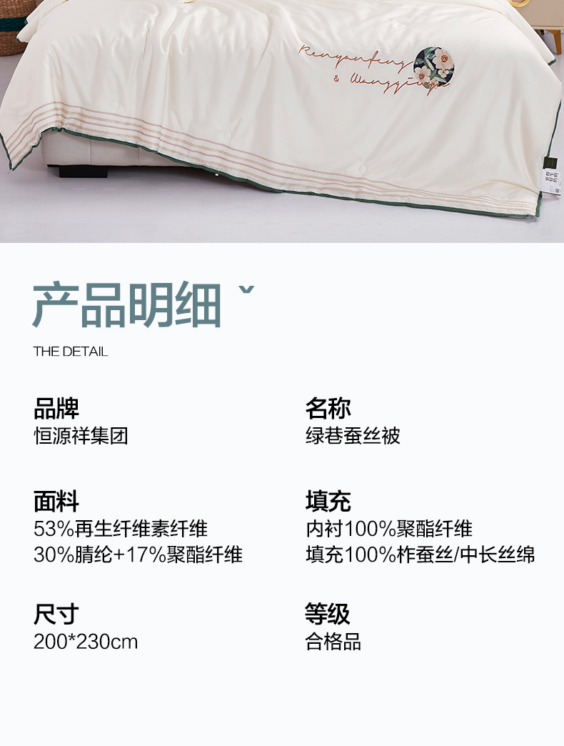商品名称:恒源祥彩羊绿巷润肤蚕丝被-本白色200*230cm 3600g