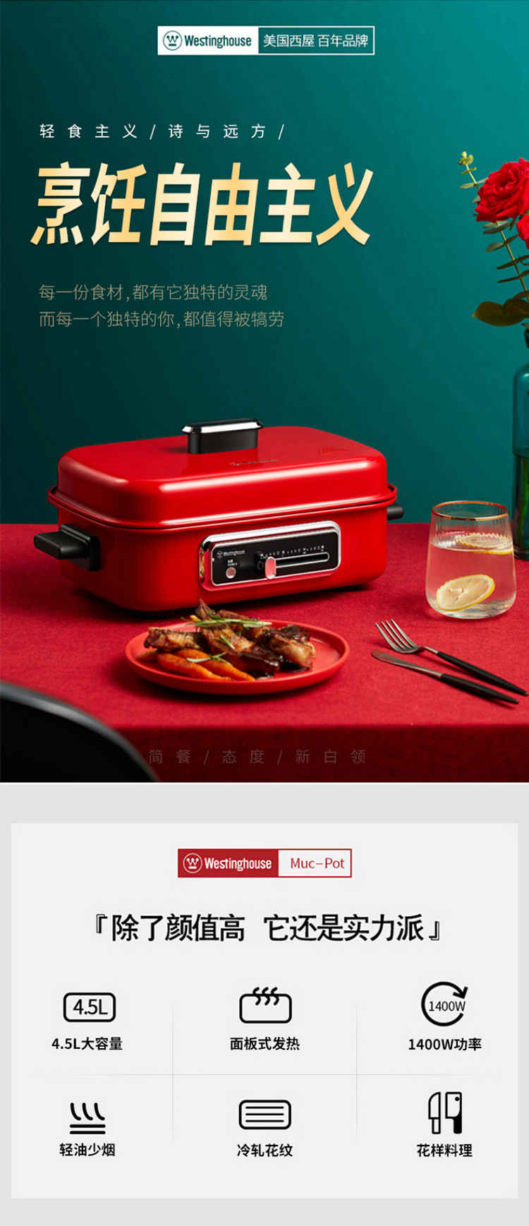 Westinghouse/西屋4.5升多功能料理锅WSC-1423