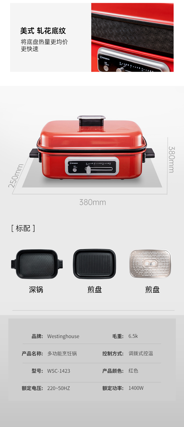 商品名称:Westinghouse/西屋4.5升多功能料理锅WSC-1423