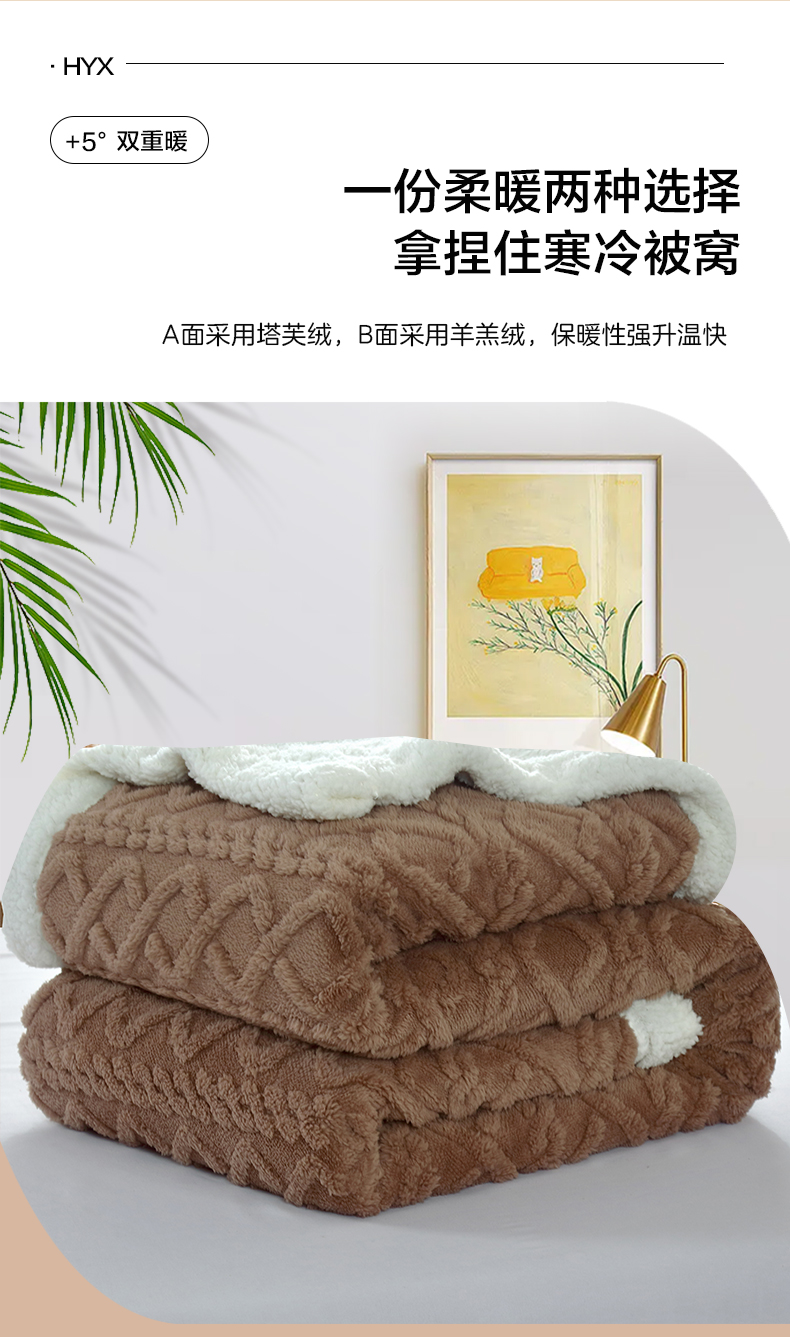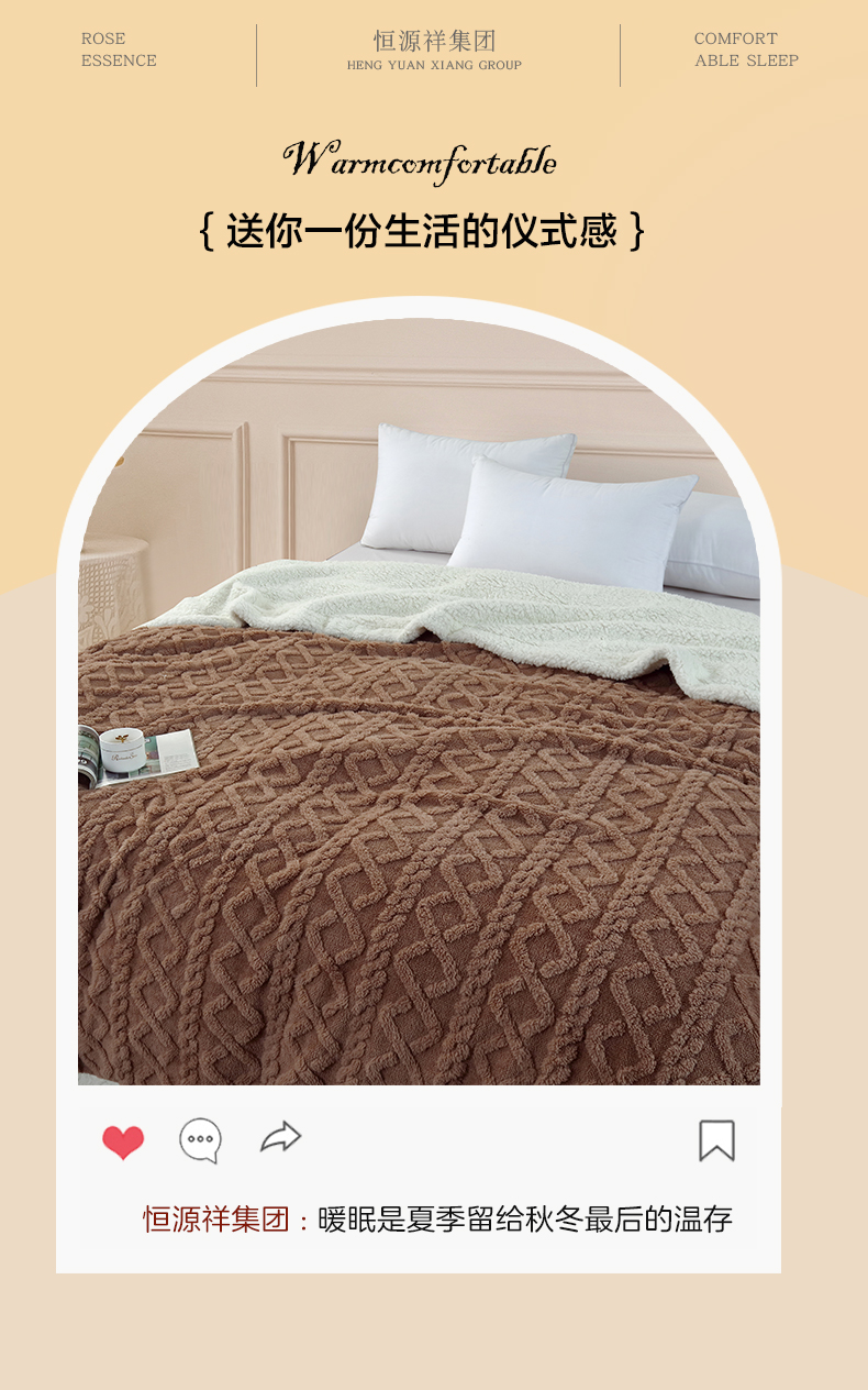 恒源祥彩羊贵妃绒毯-咖色200*230cm 2250g