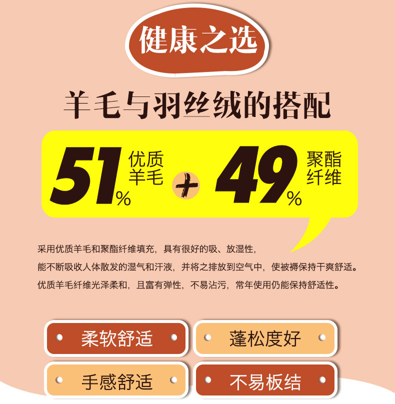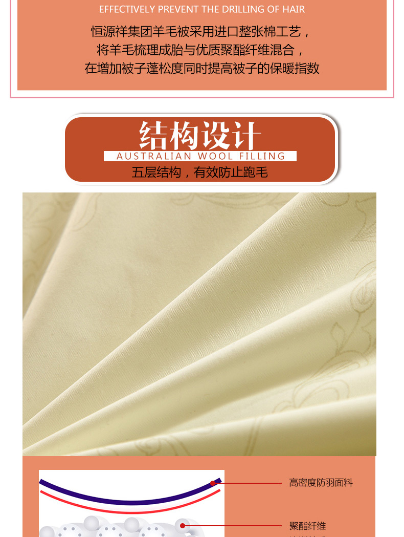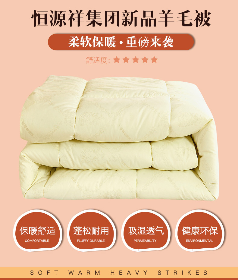商品名称:恒源祥彩羊羊毛被200*230cm 3000g