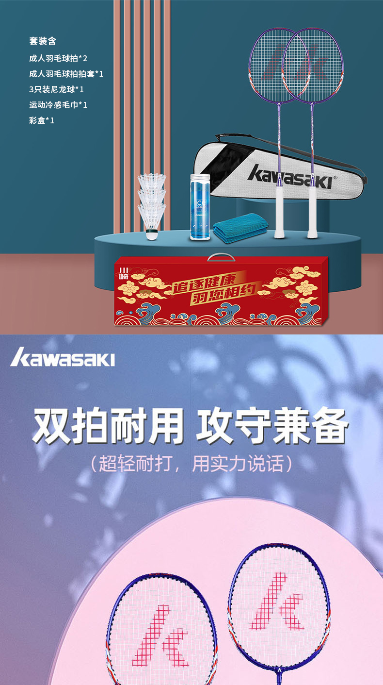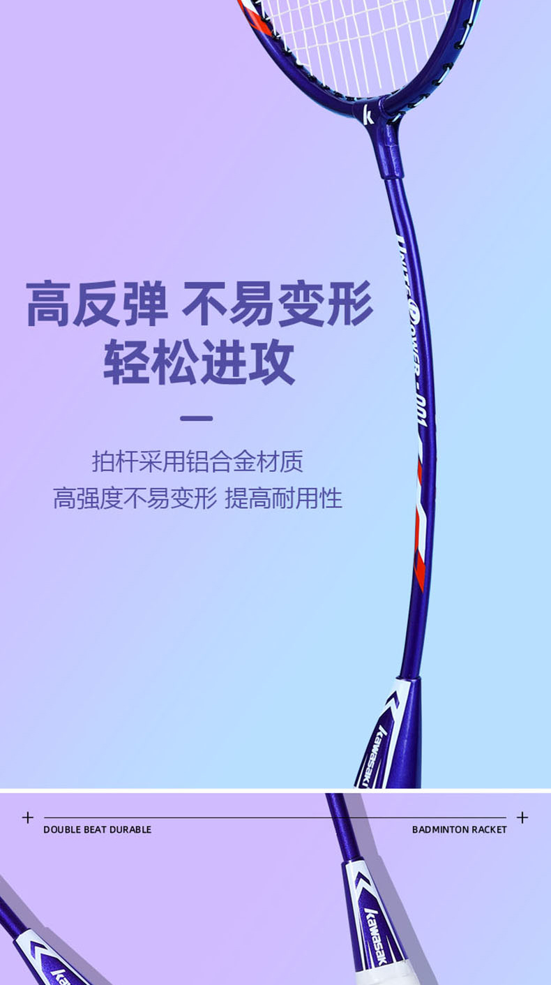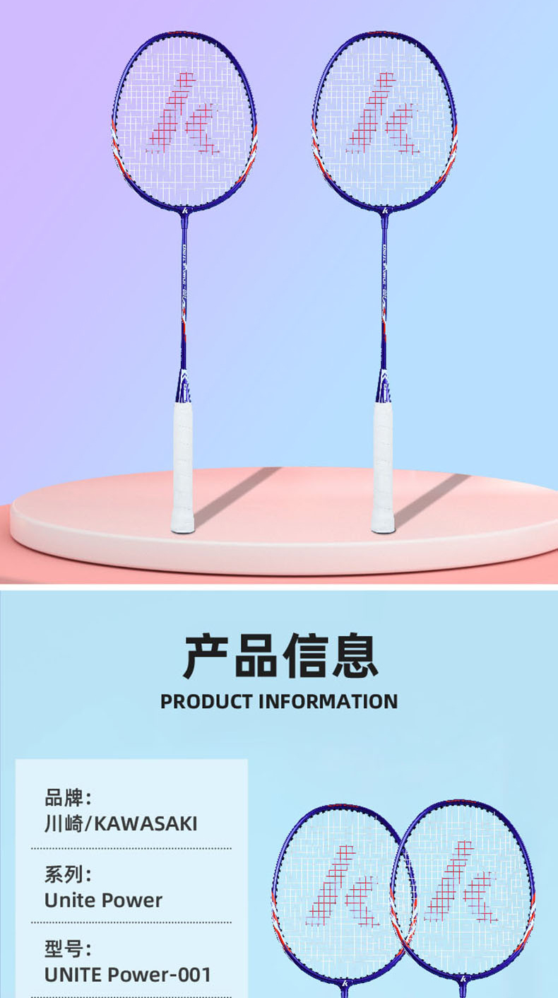 商品名称:KAWASAKI/川崎羽毛球拍运动套装UNITE Power-001(套装七)