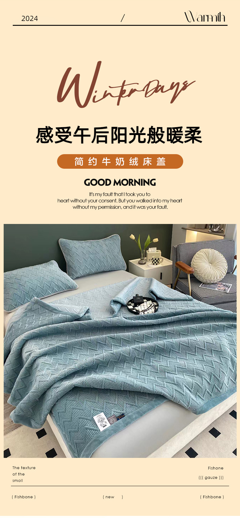 PAULO PEDRO/保罗彼得简约牛奶绒床盖200*230cm 2000g