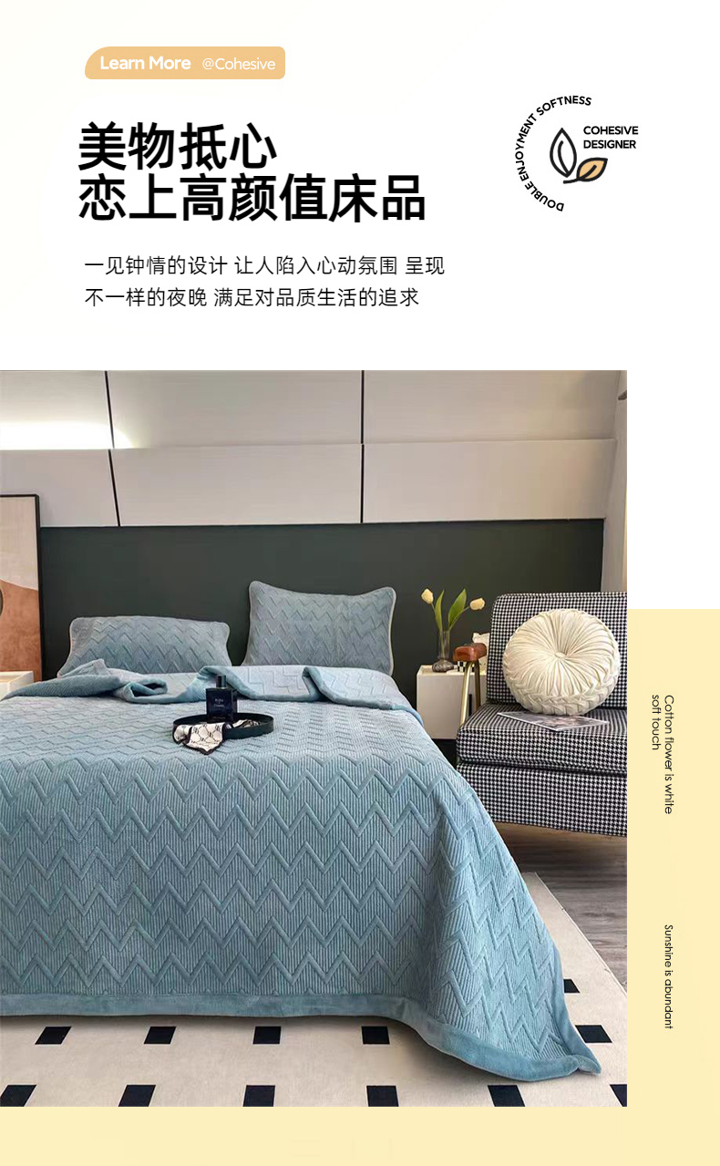 商品名称:PAULO PEDRO/保罗彼得简约牛奶绒床盖200*230cm 2000g