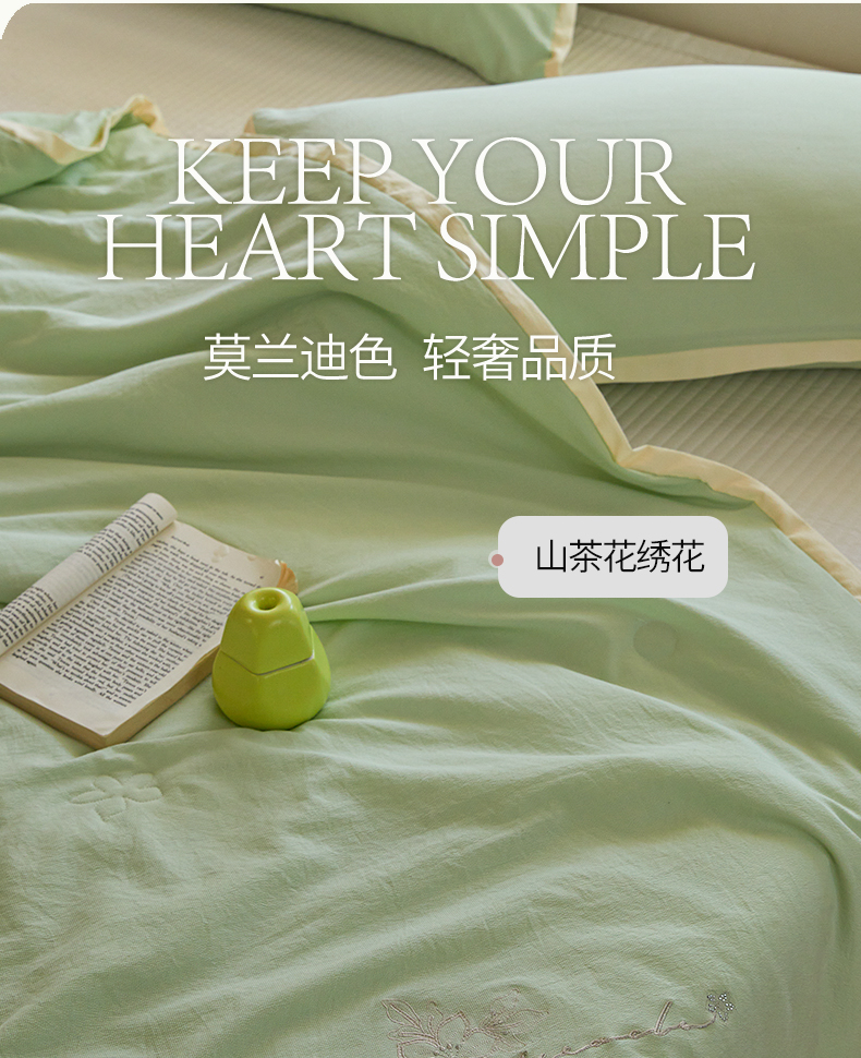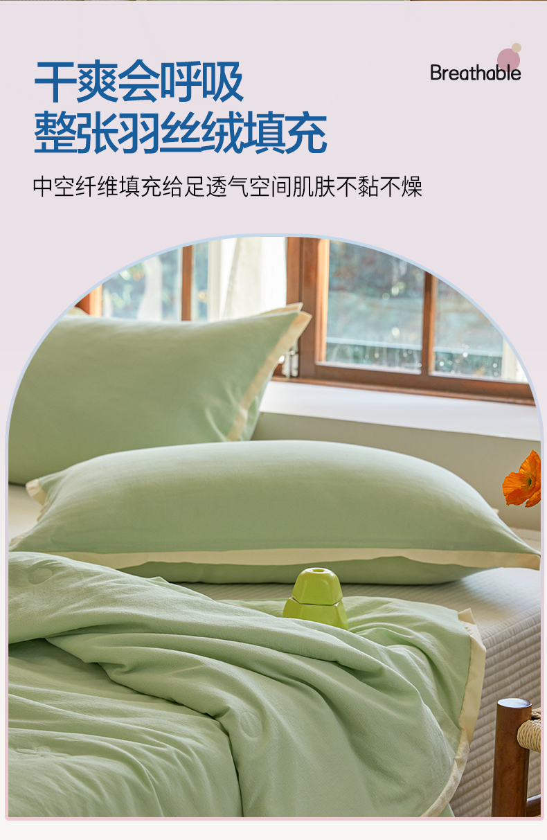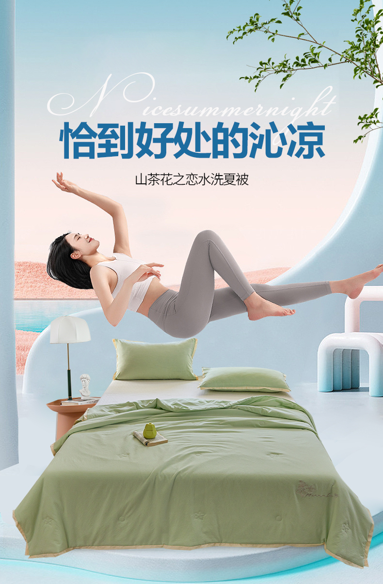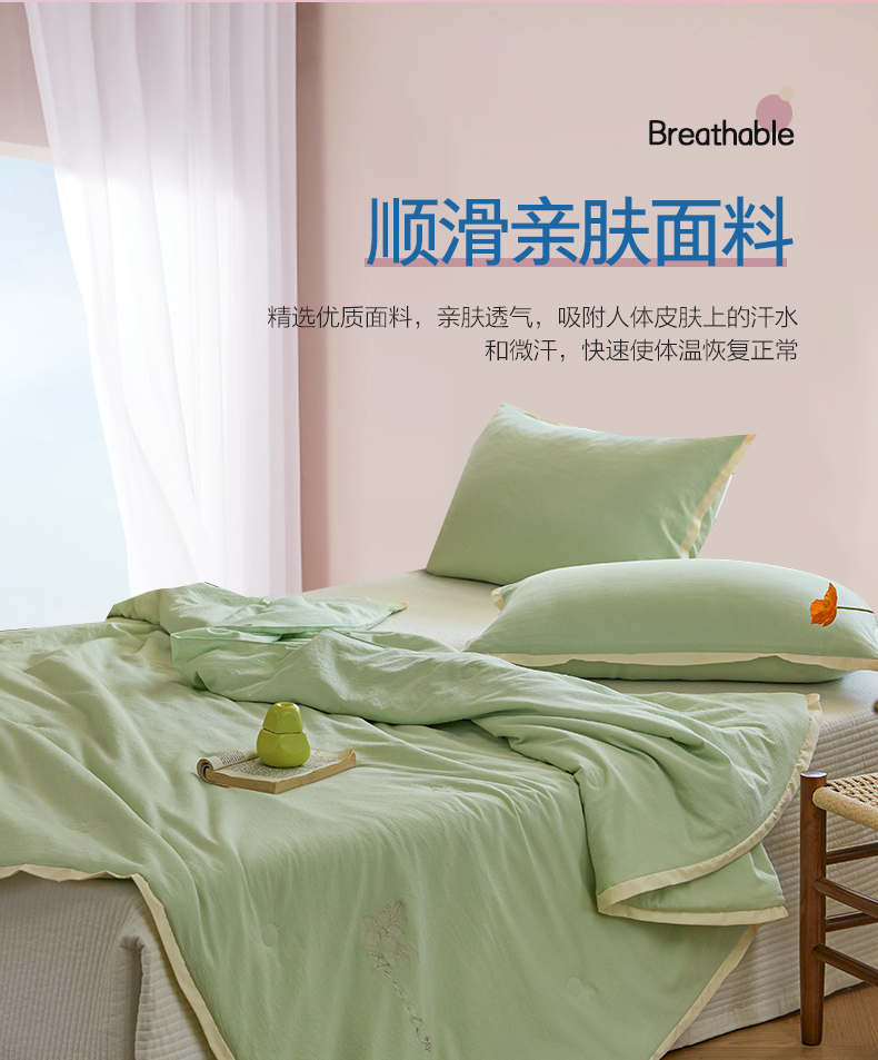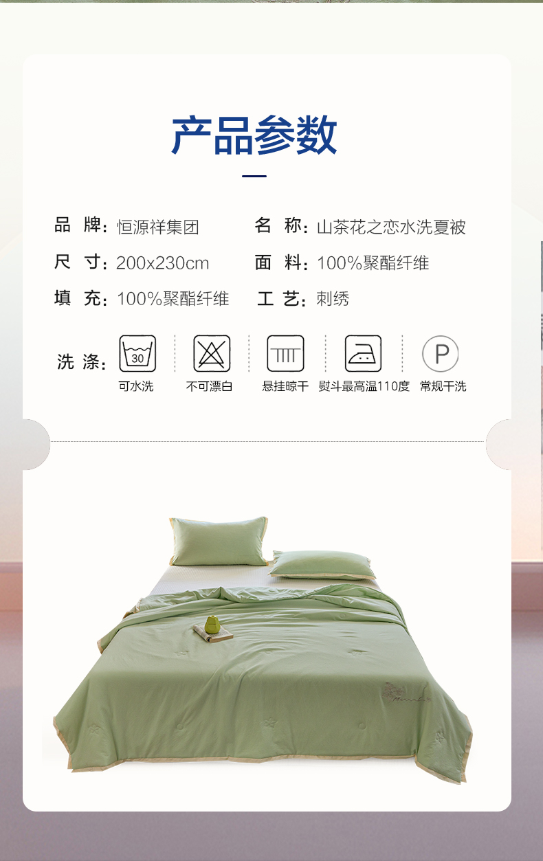 商品名称:恒源祥彩羊山茶花之恋薄荷绿绣花水洗夏被200*230cm 1500g