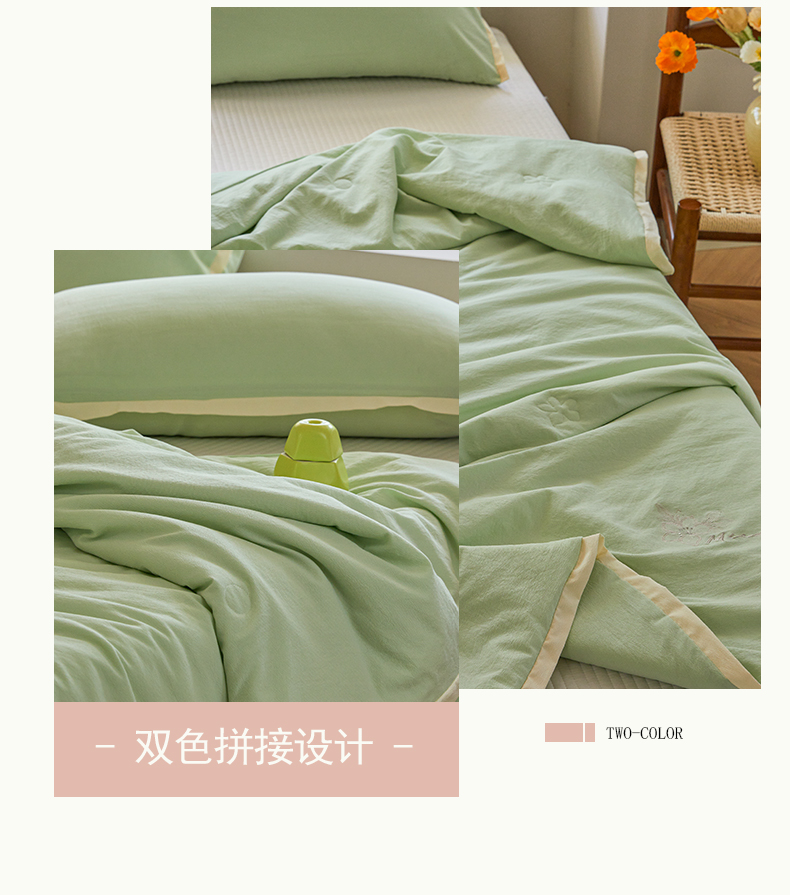 恒源祥彩羊山茶花之恋薄荷绿绣花水洗夏被200*230cm 1500g