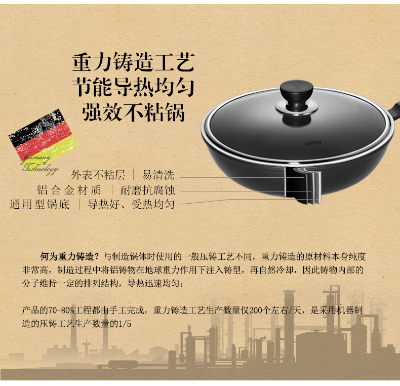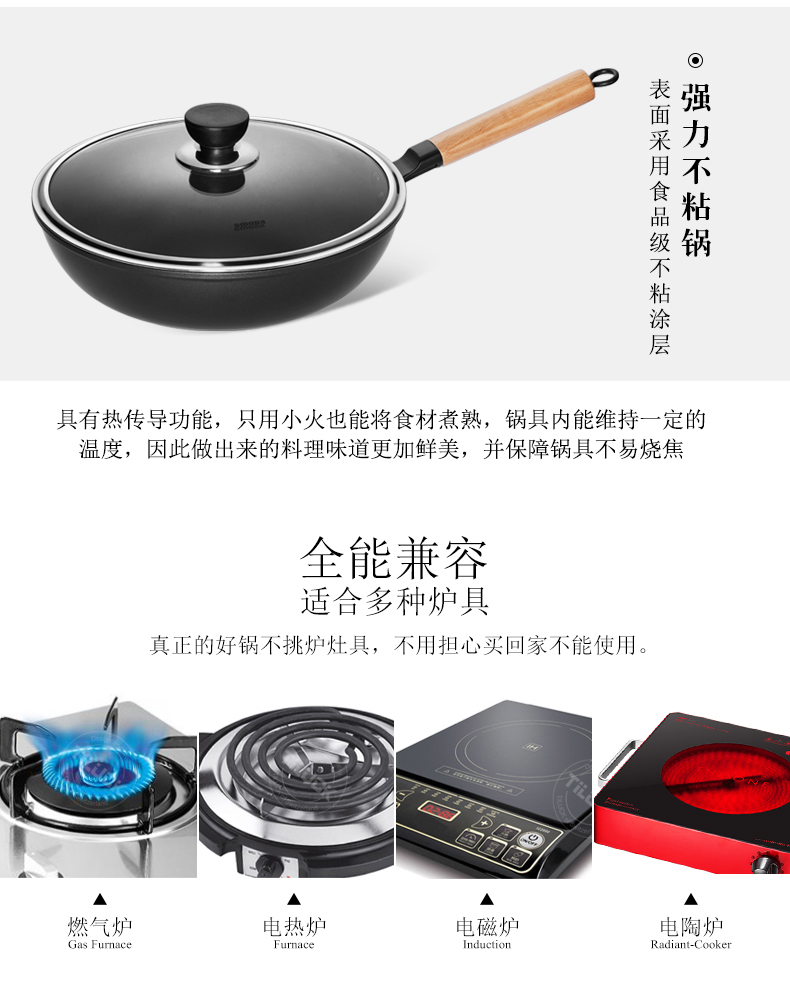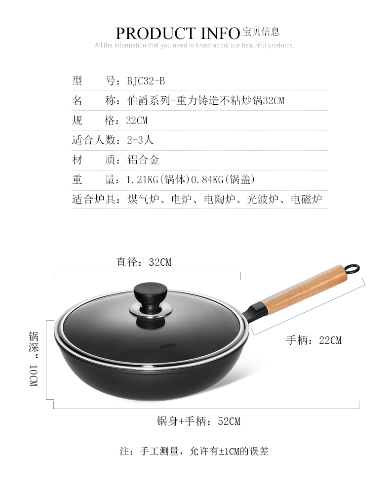 商品名称:omuda/欧美达32cm伯爵系列重力铸造不粘炒锅BJC32-B