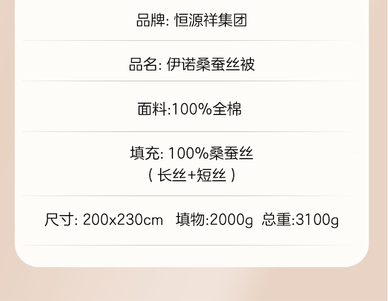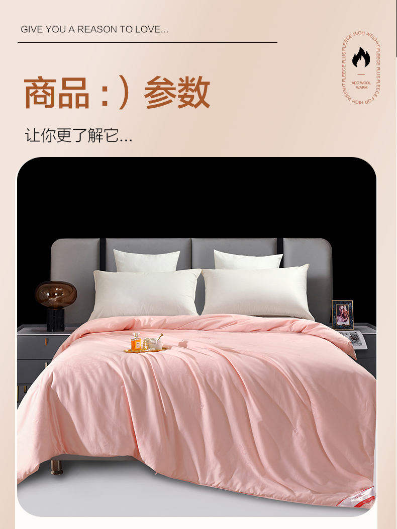 商品名称:恒源祥彩羊伊诺桑蚕丝被-粉色200*230cm 3100g