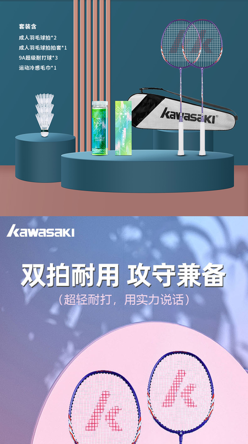 商品名称:KAWASAKI/川崎羽毛球拍运动户外套装UNITE Power-001(套装19)