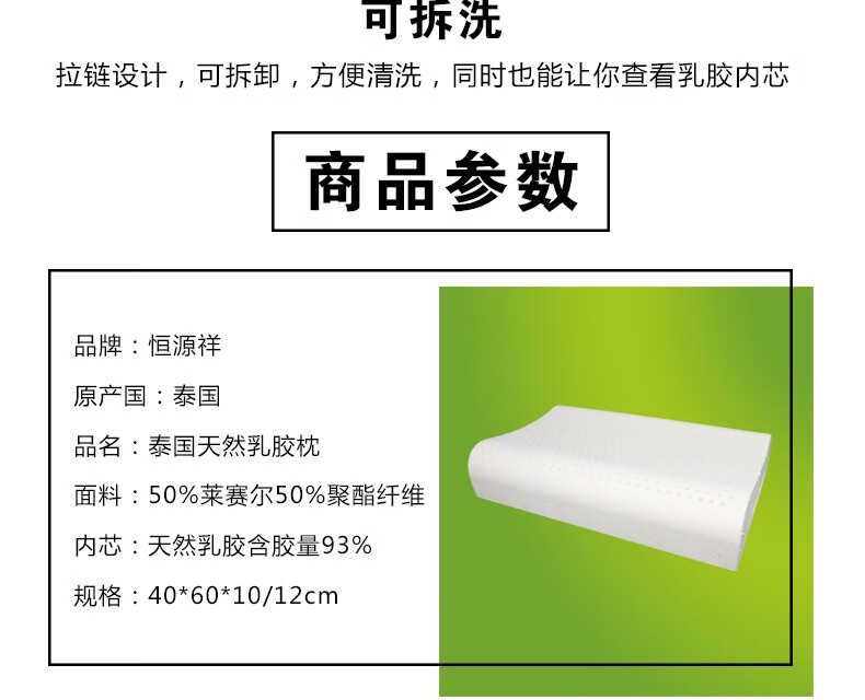 商品名称:恒源祥泰国天然乳胶枕1只TRJ1002