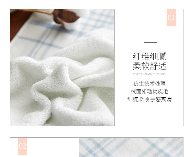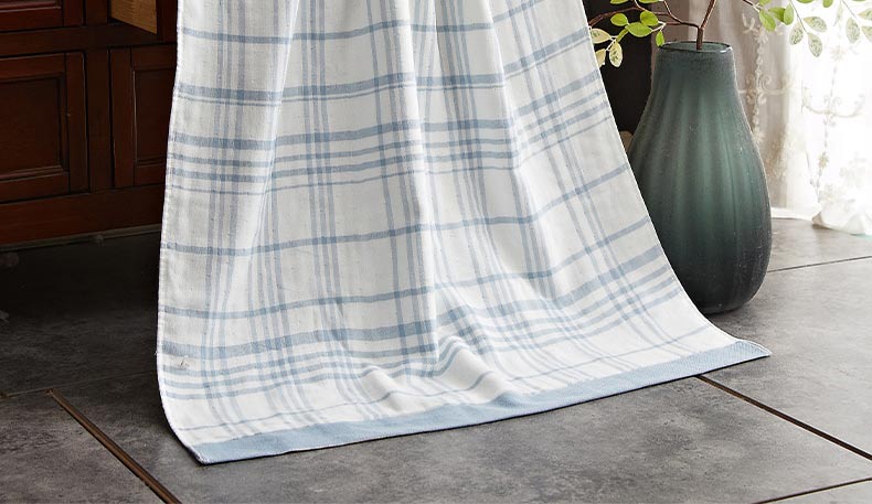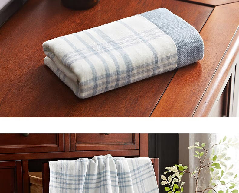【顺丰配送】恒源祥水墨亲肤棉毛巾浴巾三件套-蓝白格